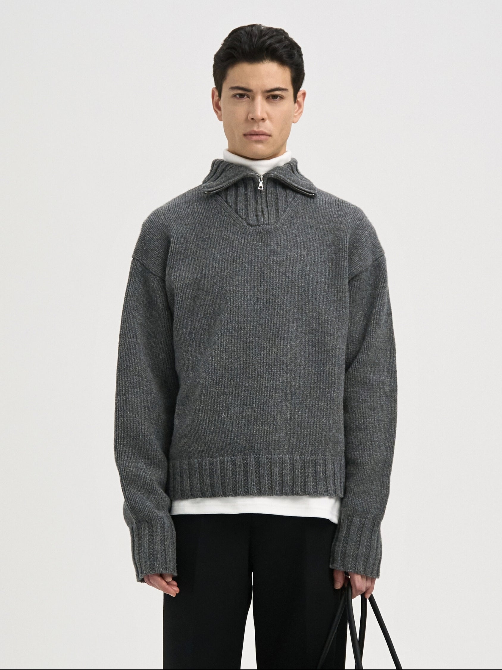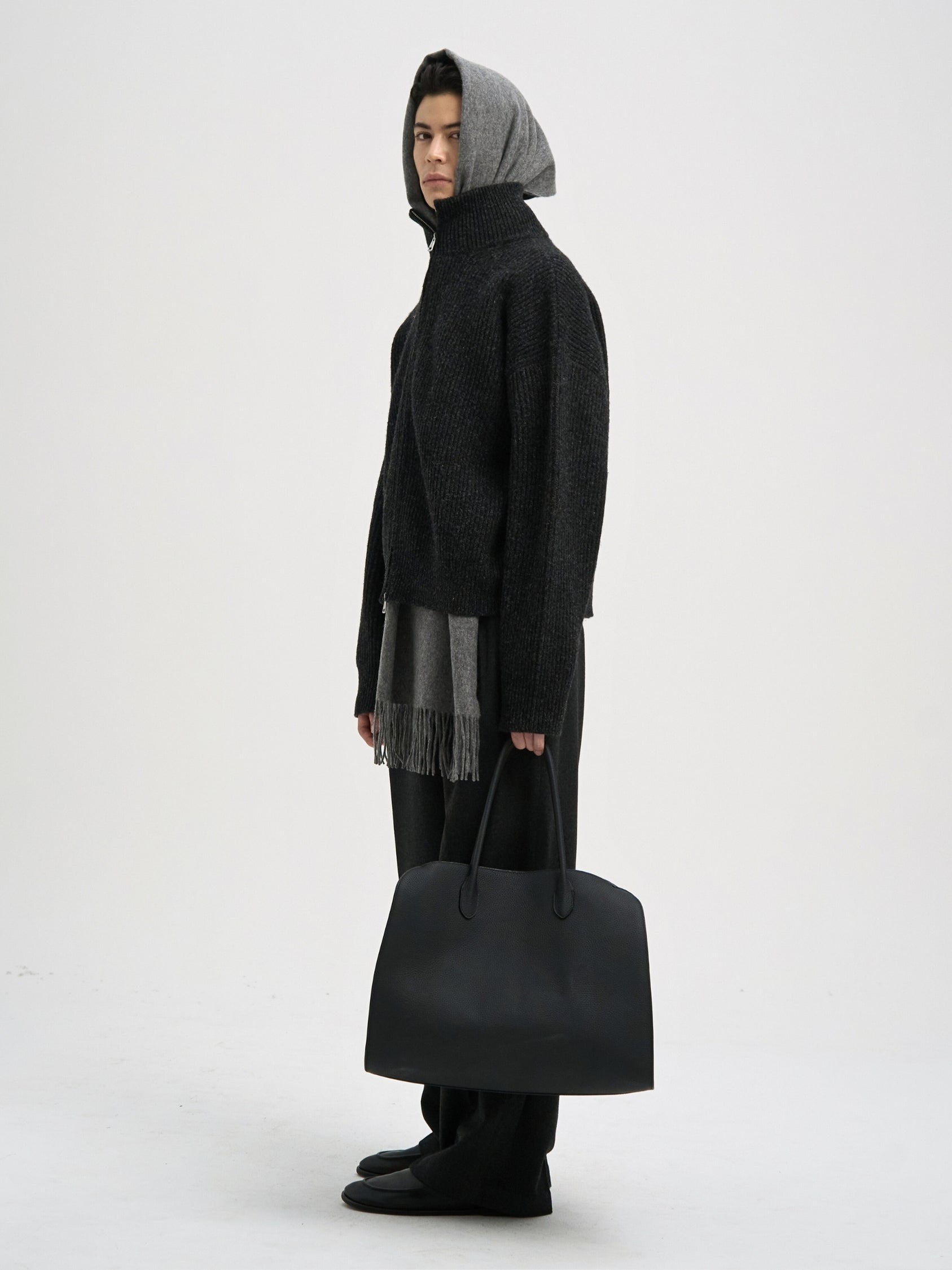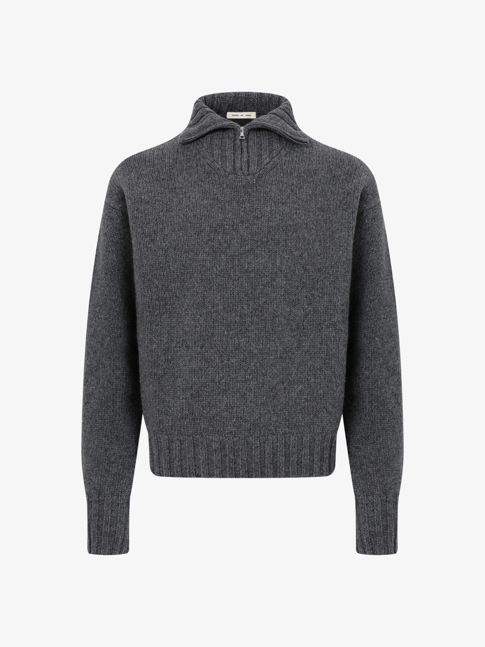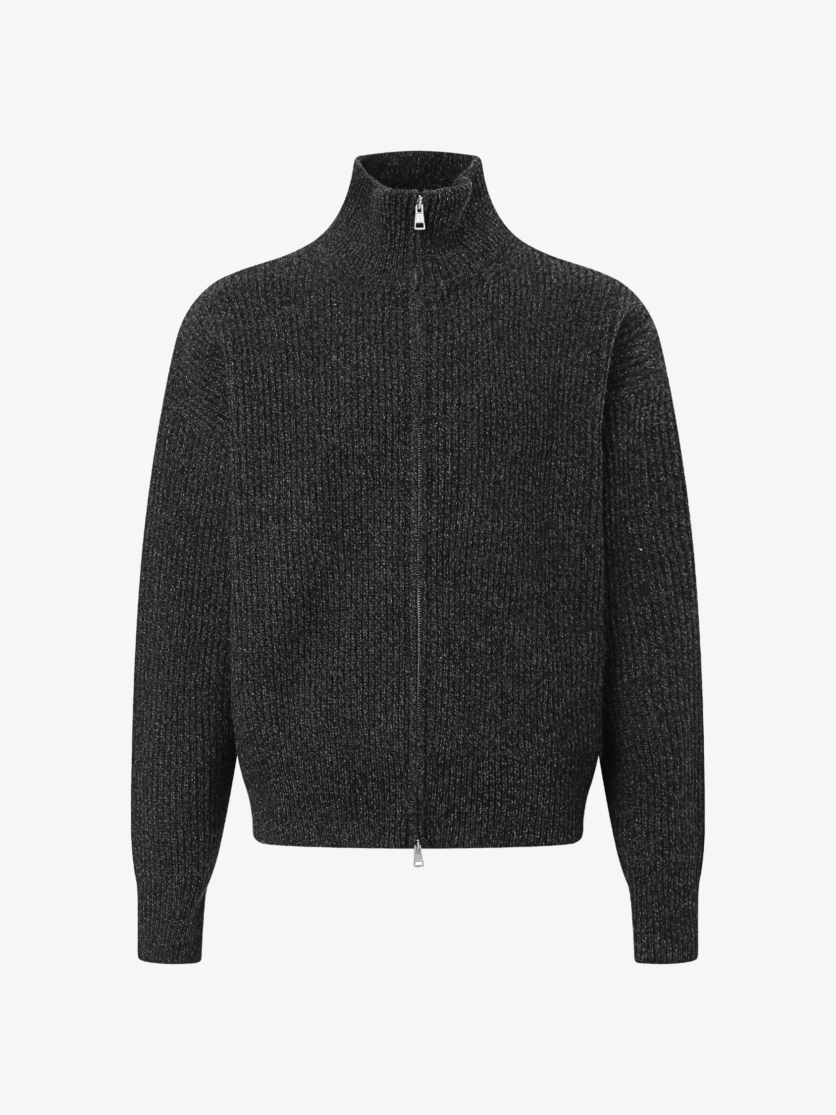 MILES High Neck Cropped Zip Sweater in Black Melange