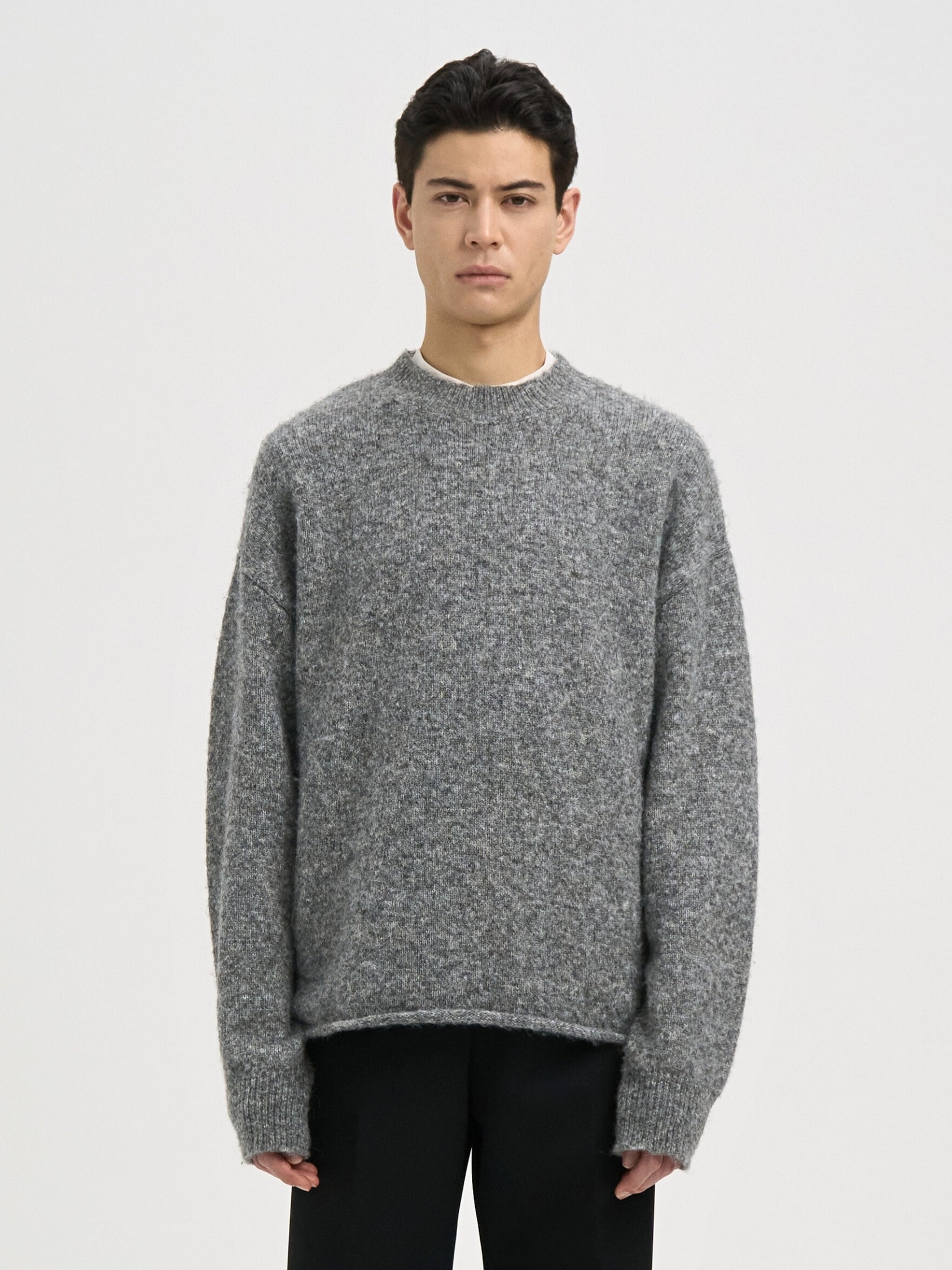 HAYES Cashmere Knit L/S Tee in Charcoal Marl