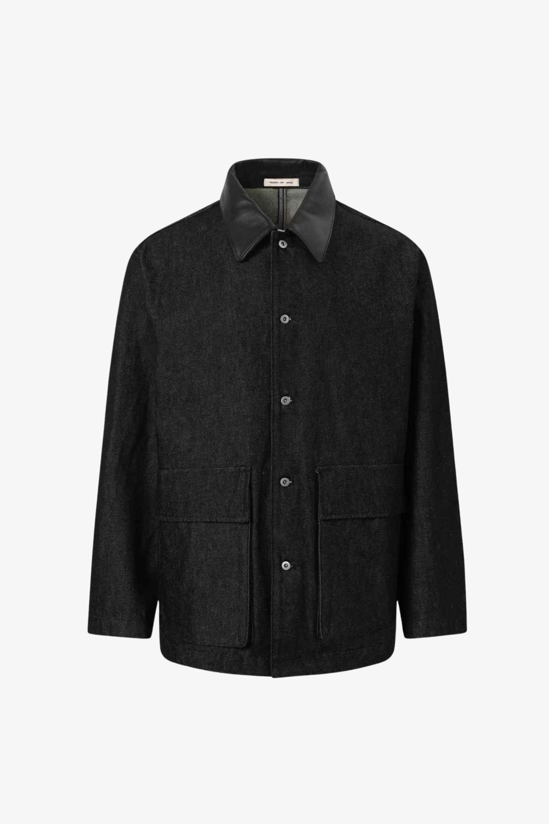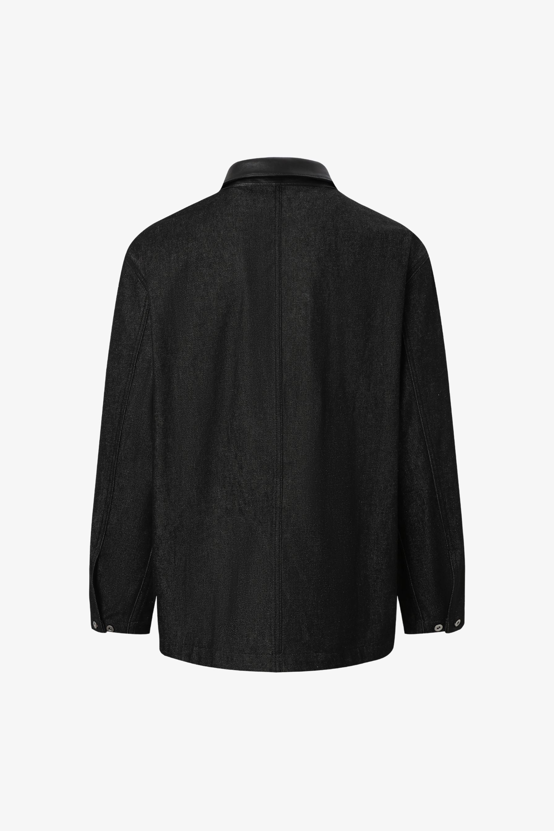 LIAM Lambskin Leather Collar Field Jacket in Black Japanese Raw Denim