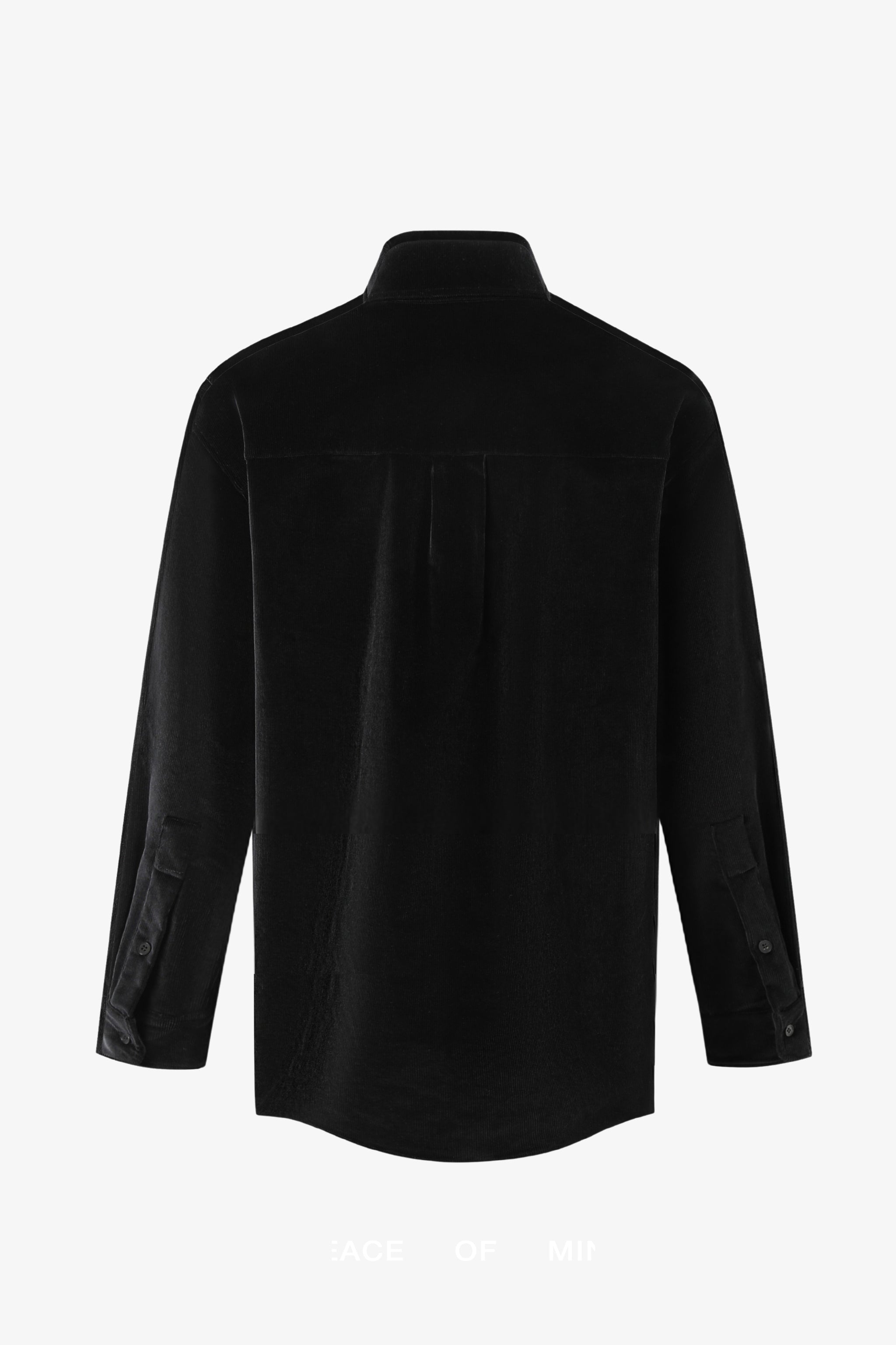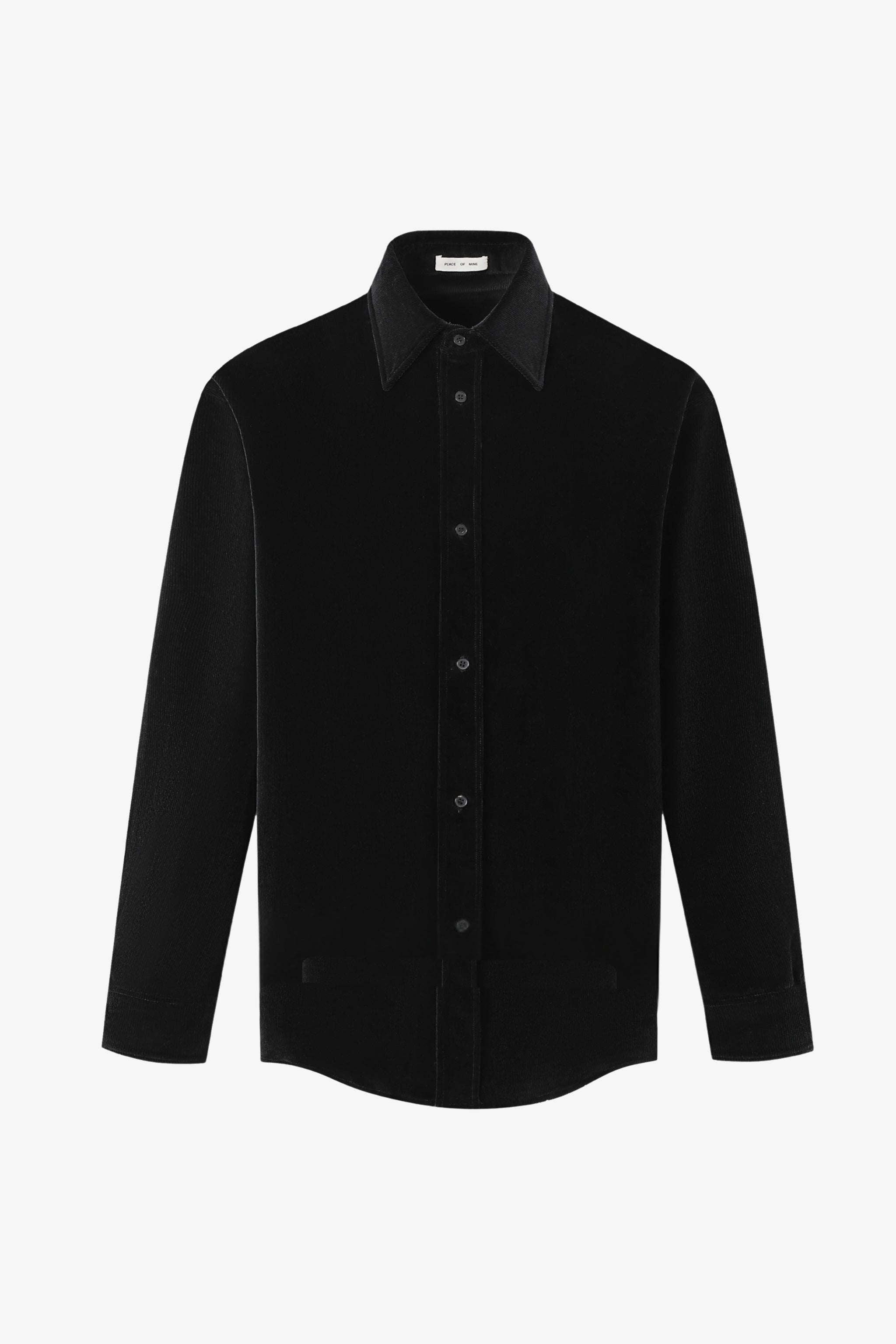 DAVID L/S Shirt in Piano Black Cotton Corduroy