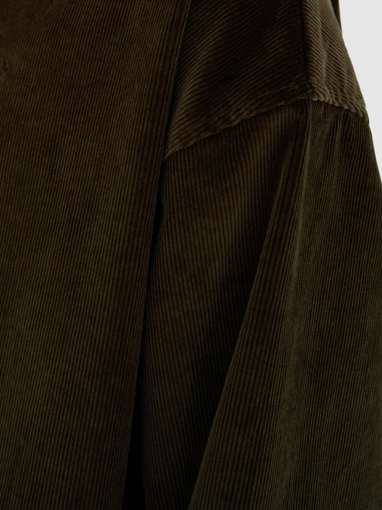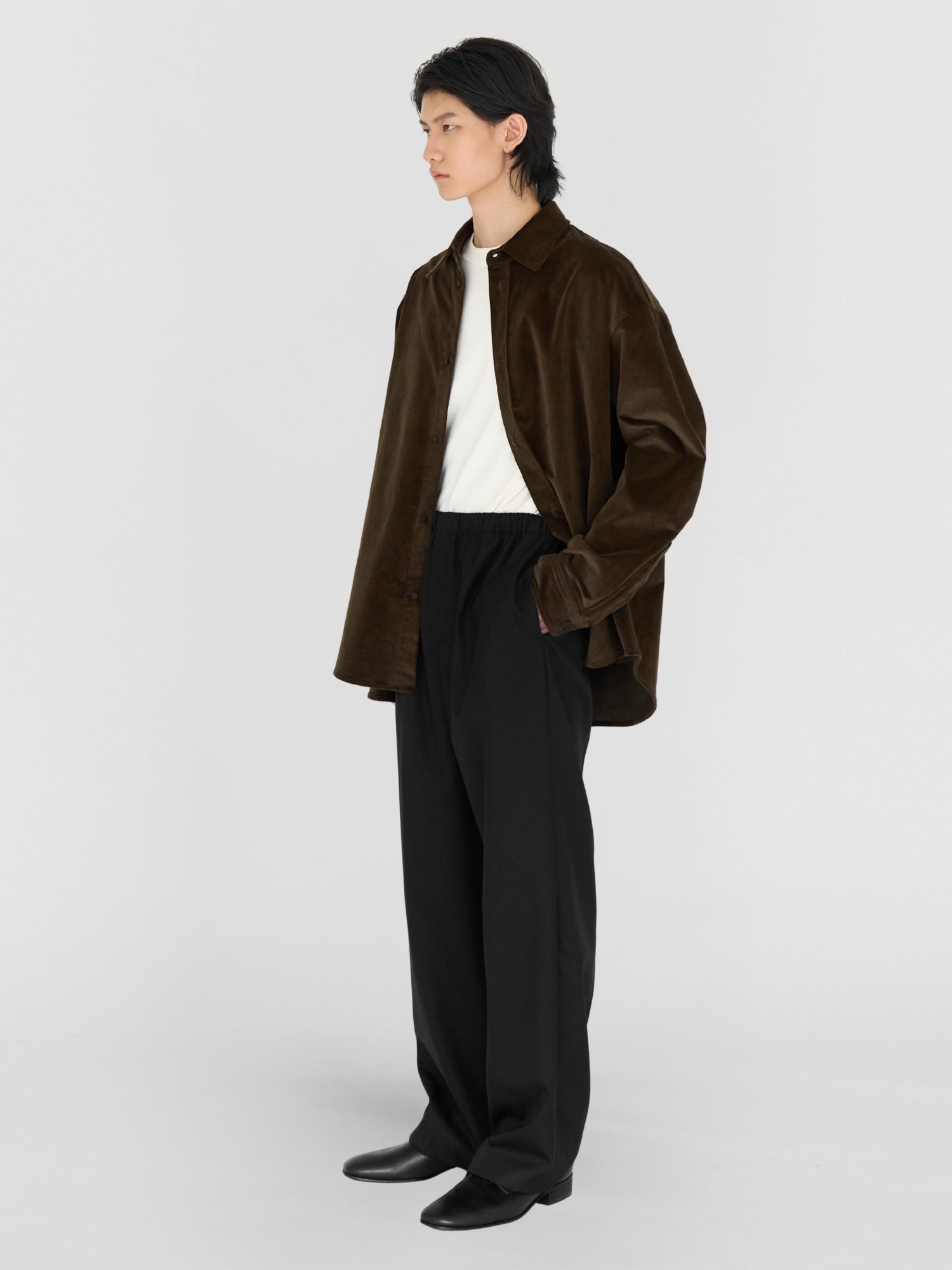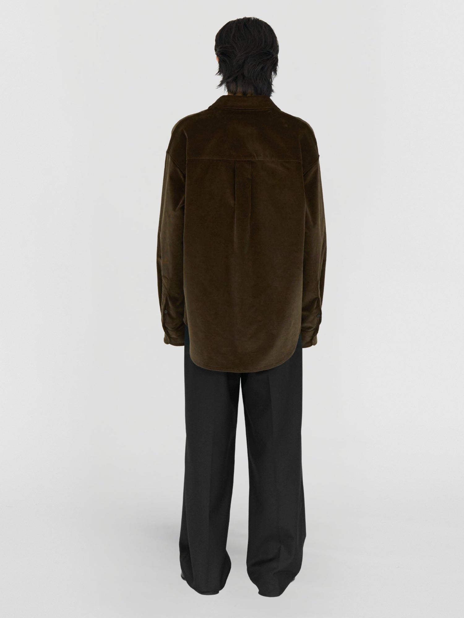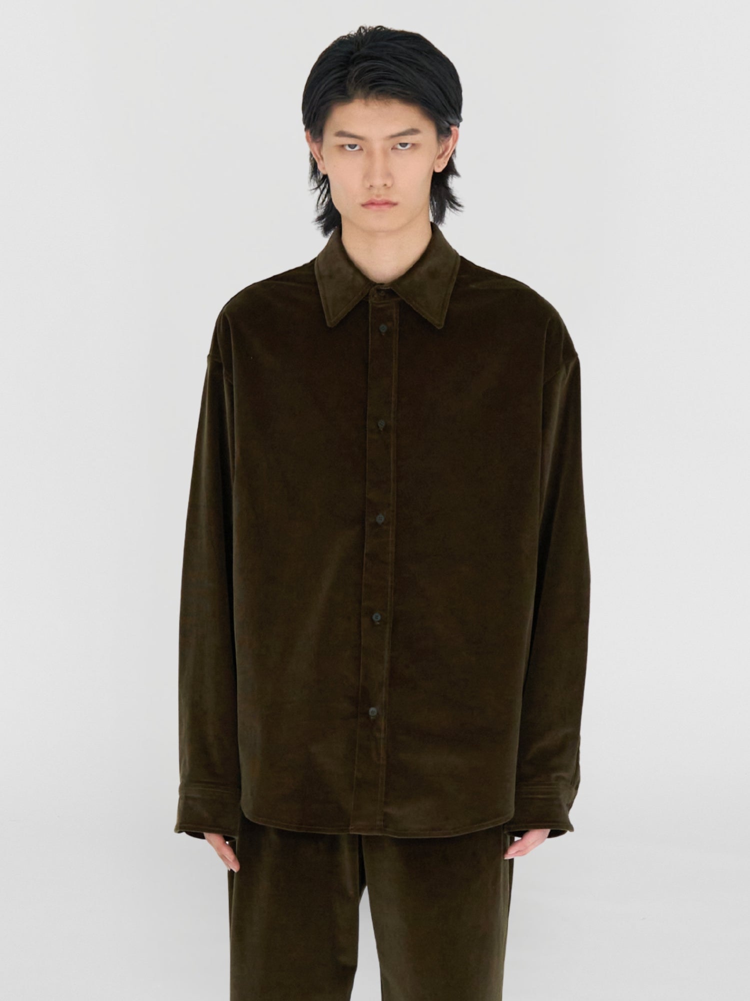 The DAVID Shirt is tailored from a refined Japanese 16-wale count cotton corduroy, it features a soft, brushed outer texture and a distinctive lustrous sheen unique to premium corduroy. The fabric offers substantial thickness that lends structure without heaviness. Thoughtful details—such as a reversed front placket, curved hem, and refined pleating at the back and sleeves—add quiet distinction to the design. Cut to an oversized silhouette, it can be worn effortlessly as outerwear or worn on its own.