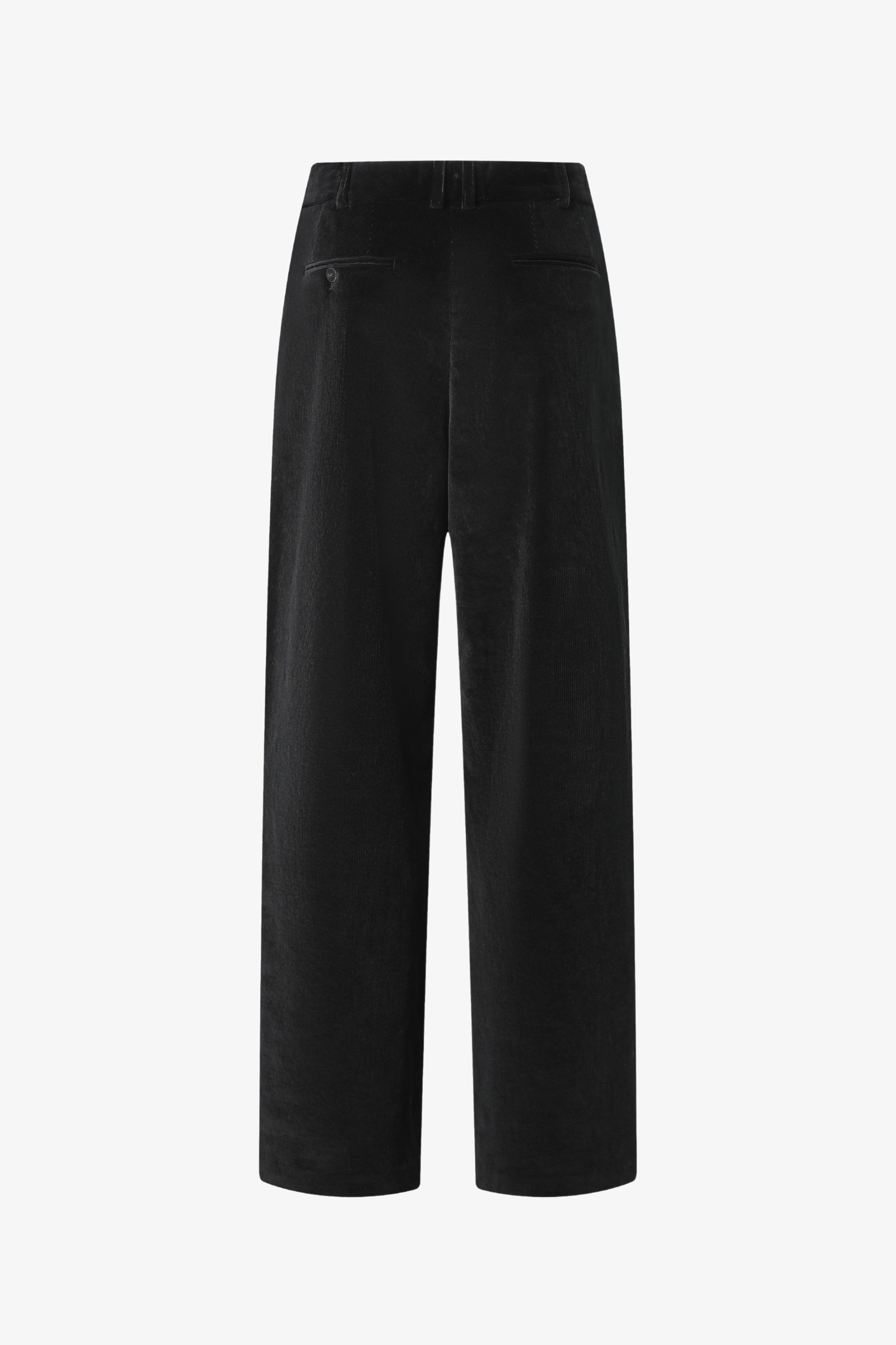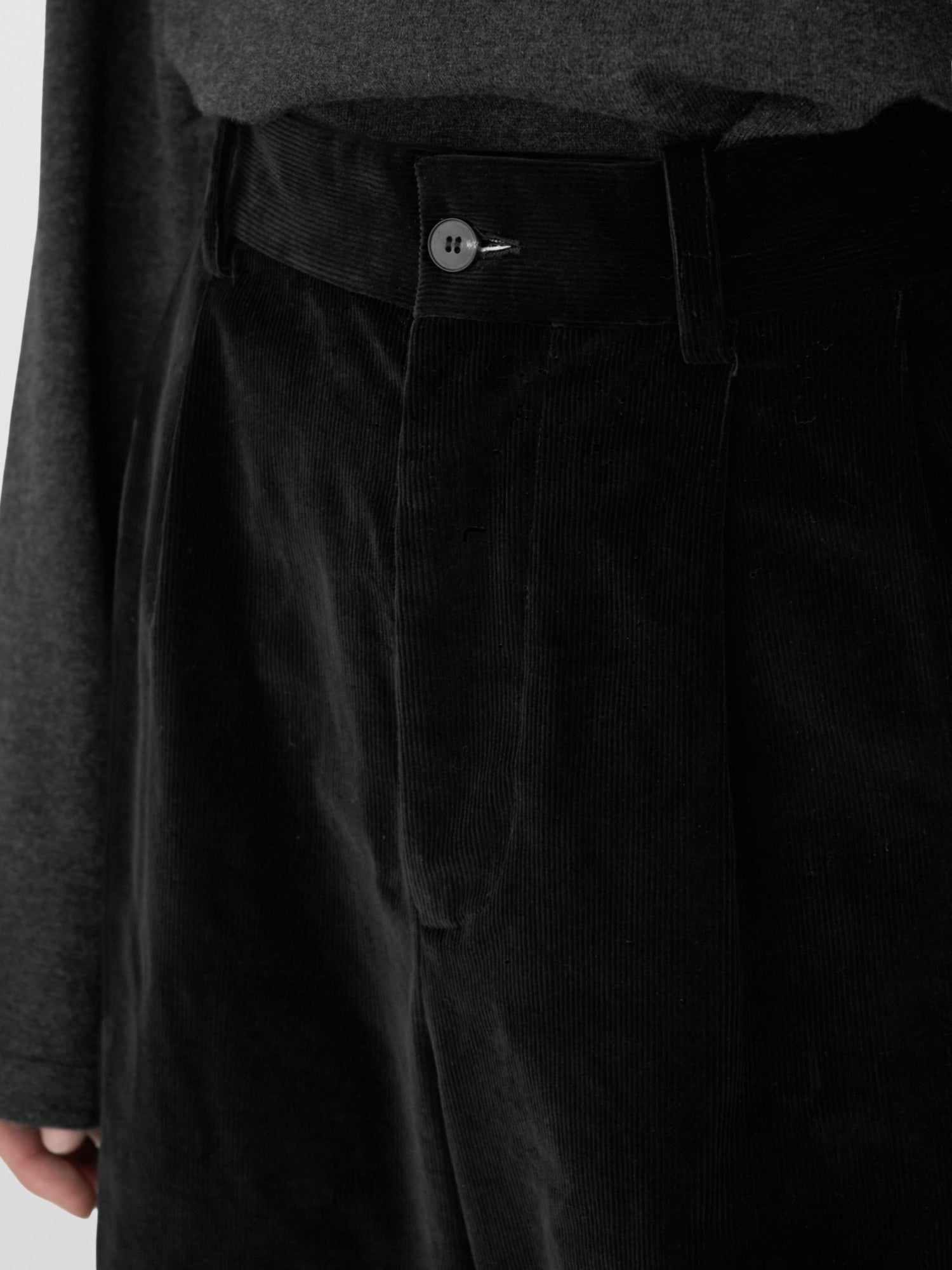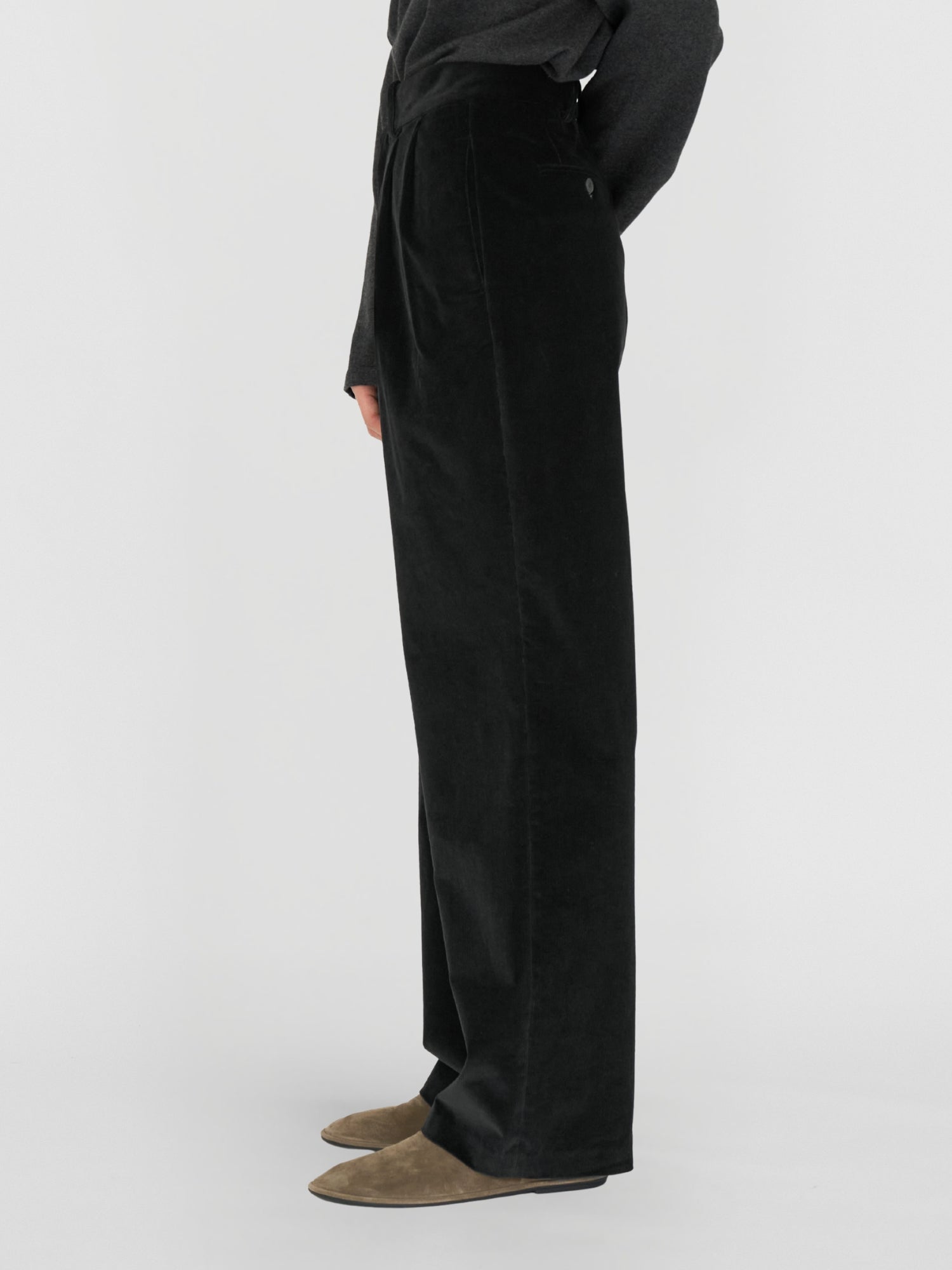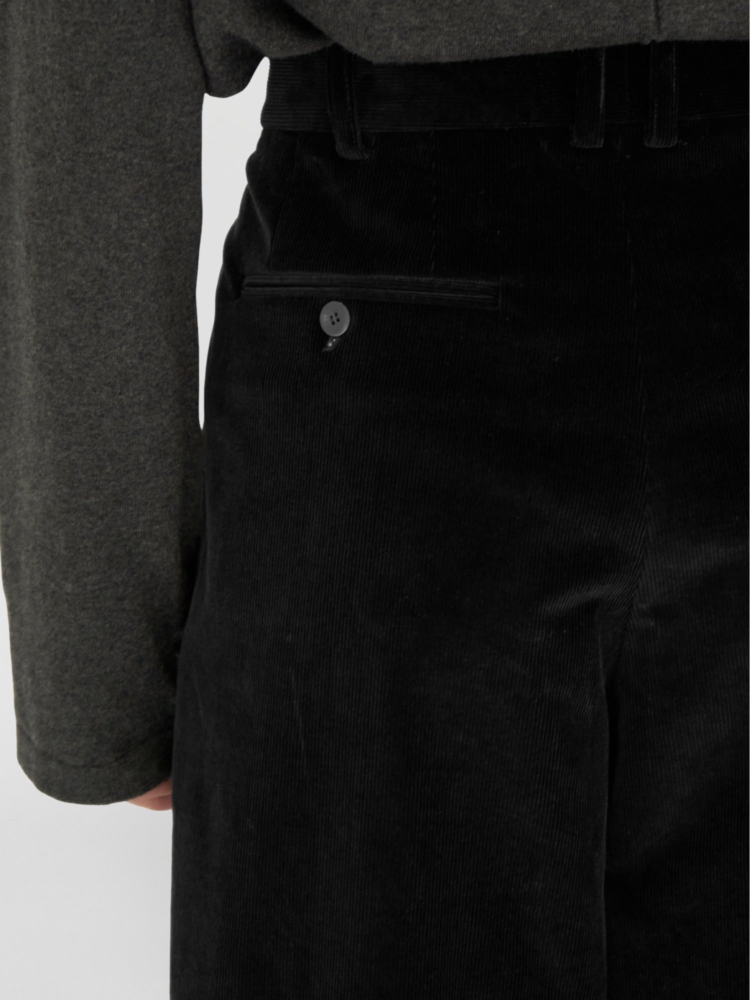LEON Double Pleated Trouser in Piano Black Cotton Corduroy