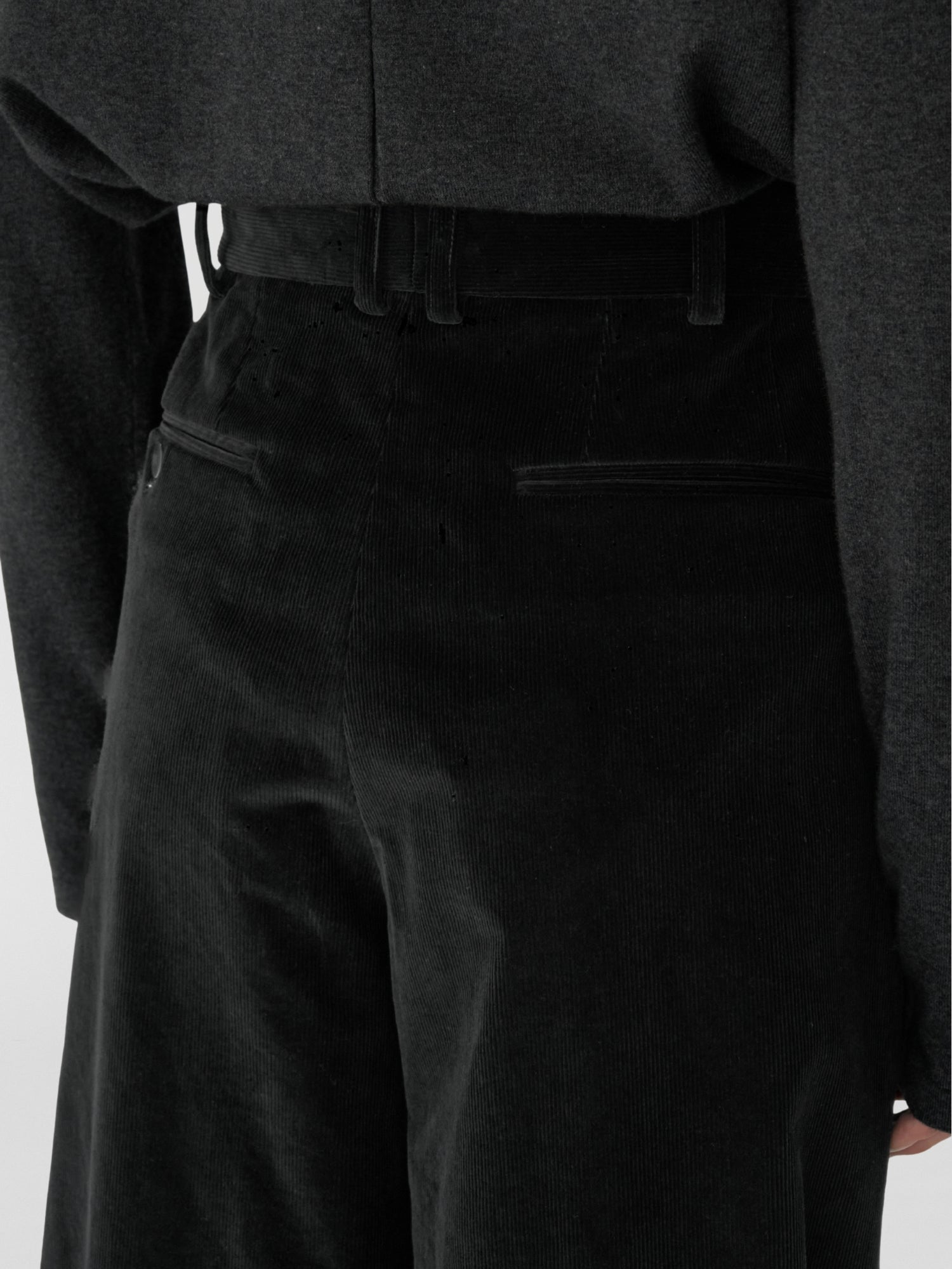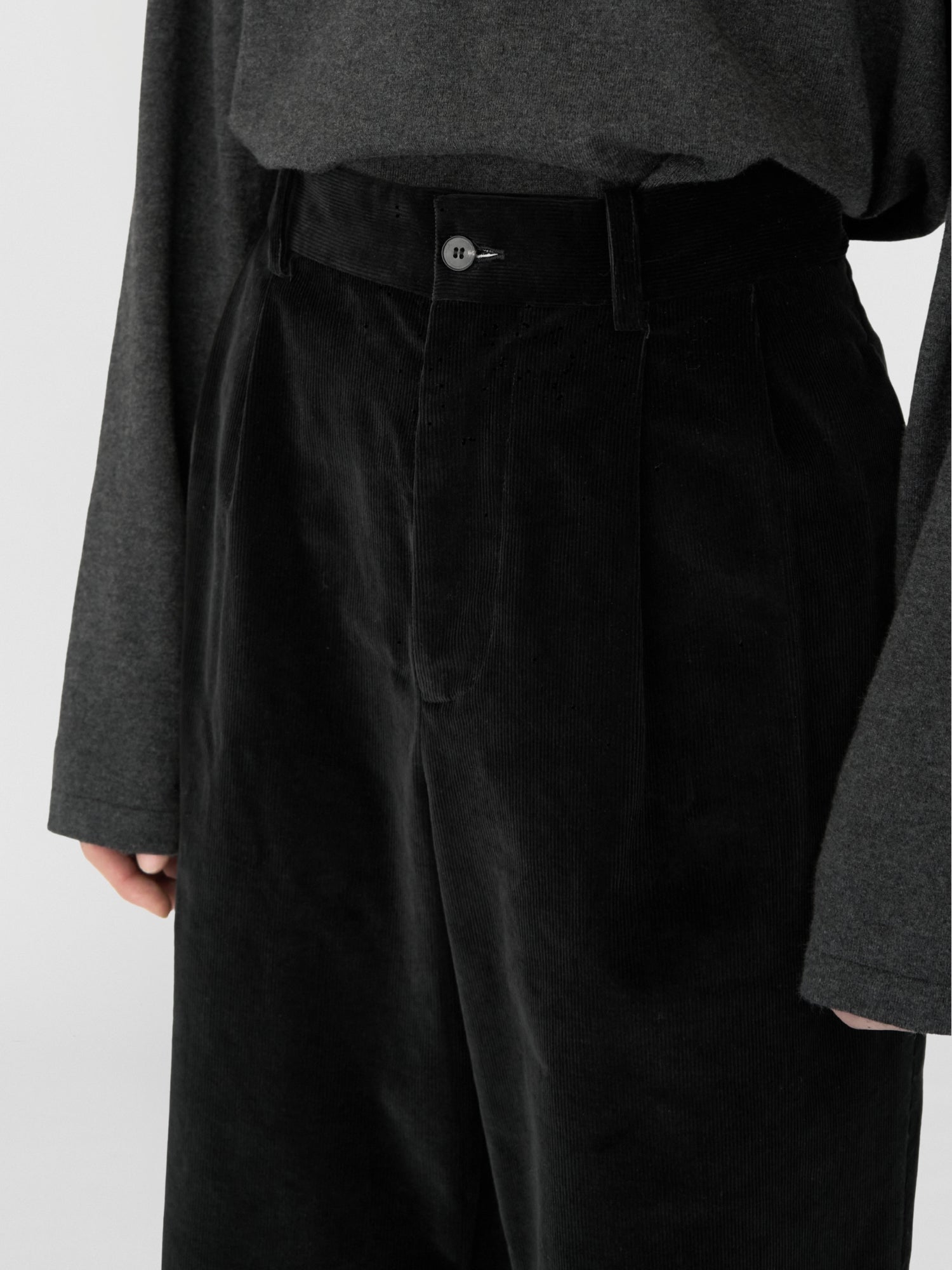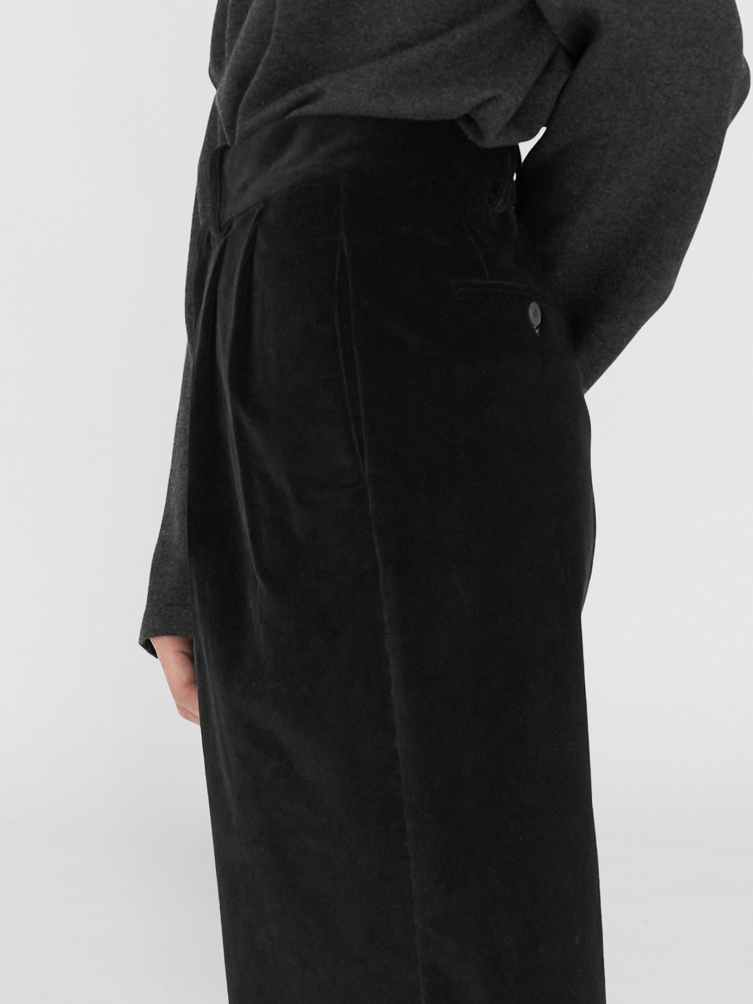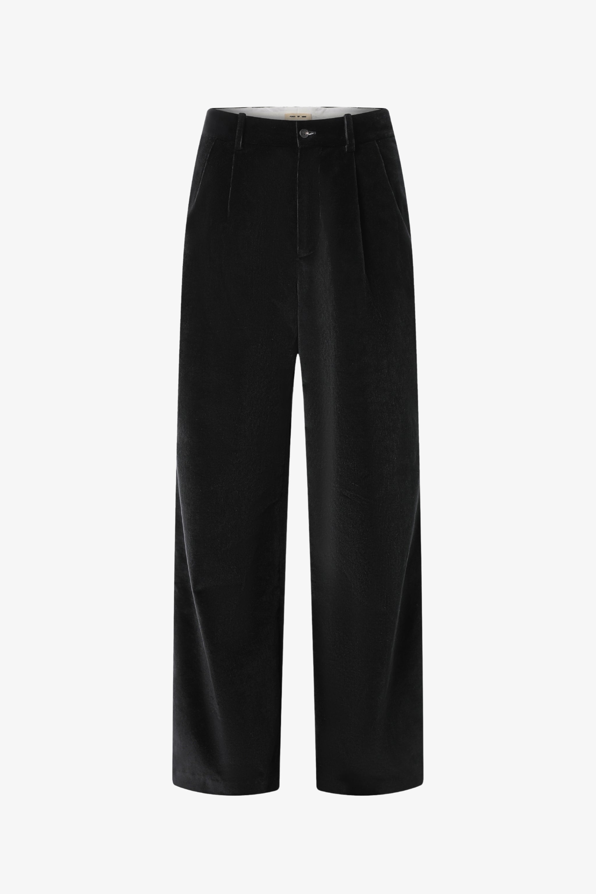 LEON Double Pleated Trouser in Piano Black Cotton Corduroy