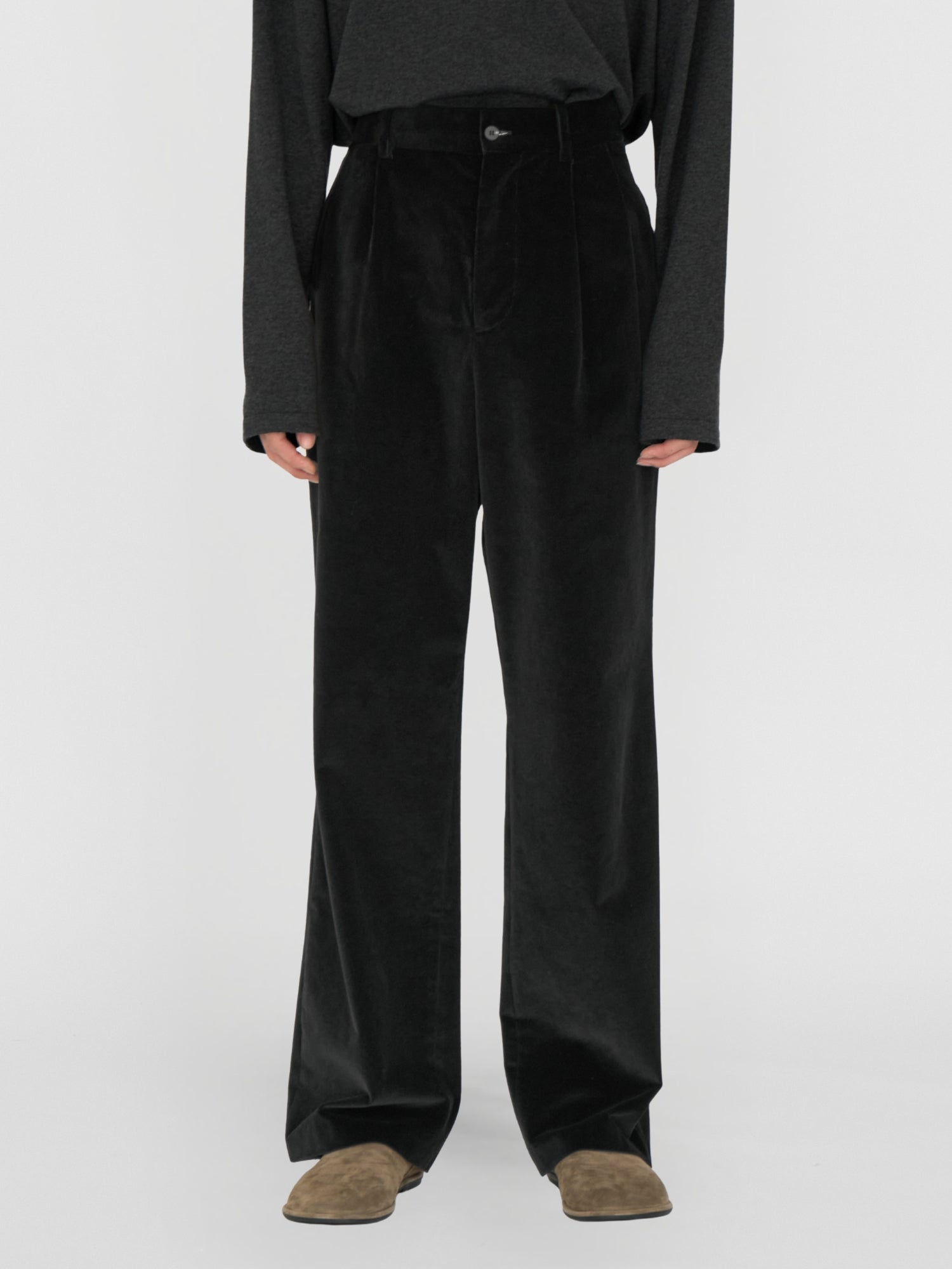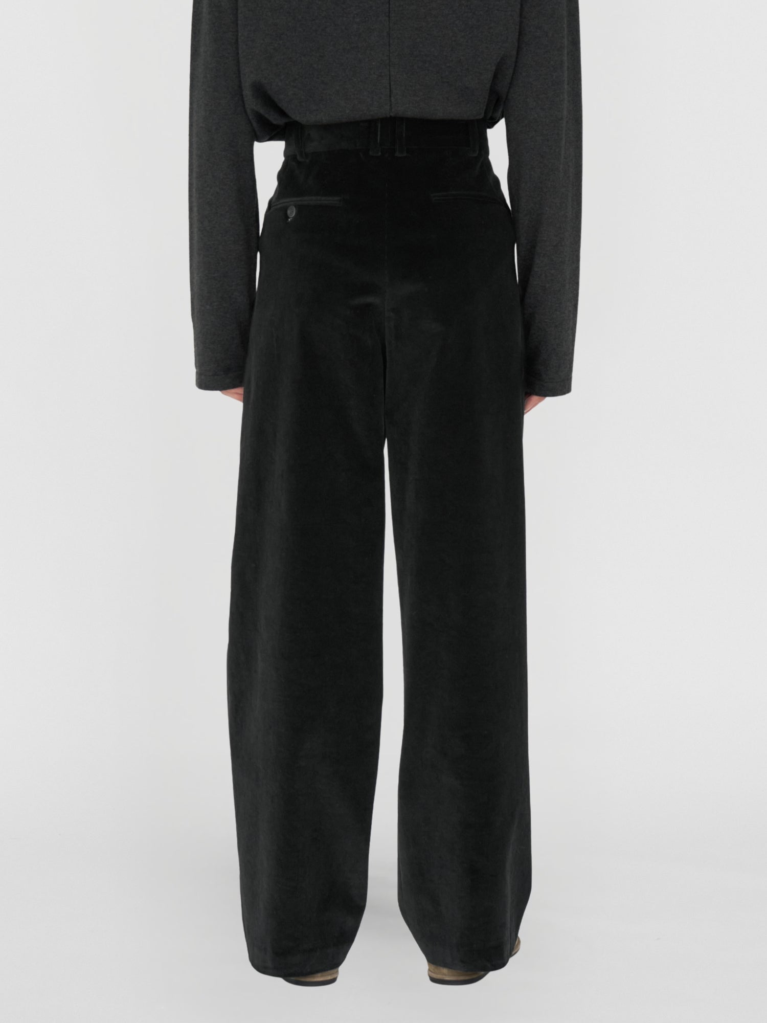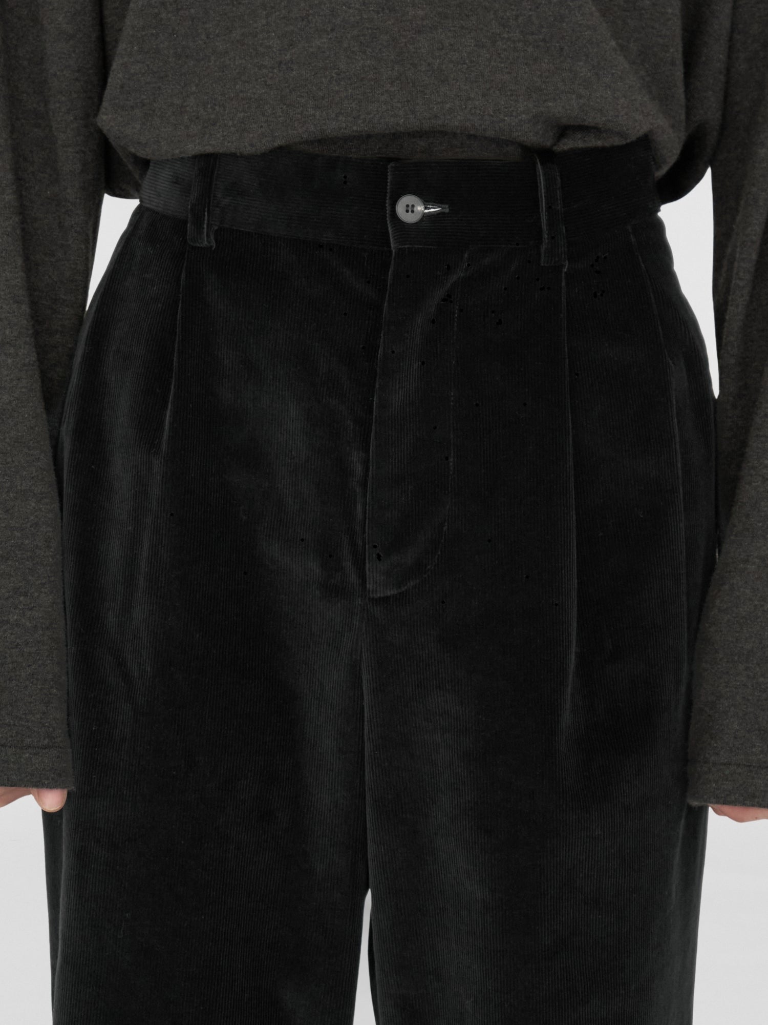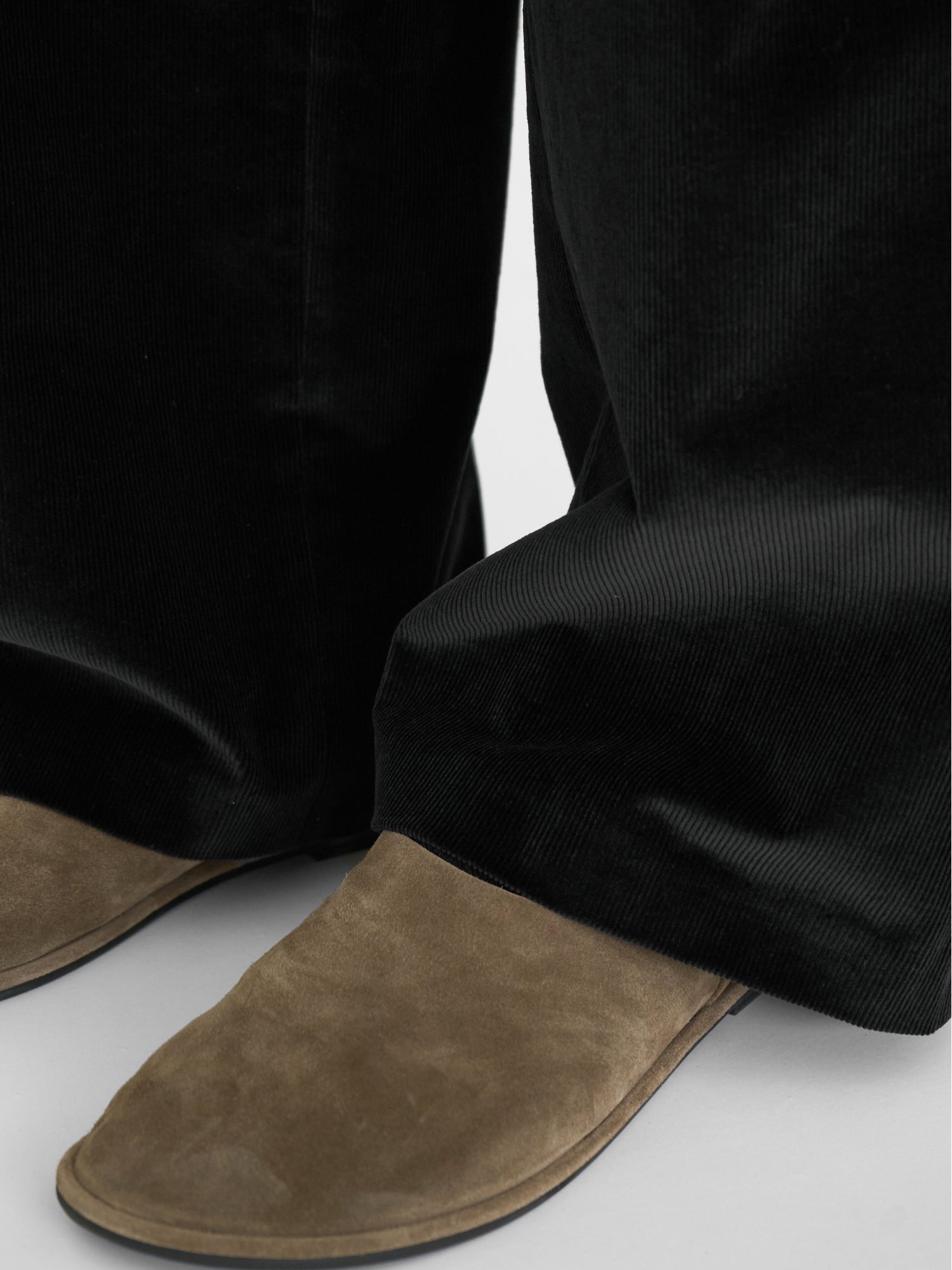 LEON Double Pleated Trouser in Piano Black Cotton Corduroy