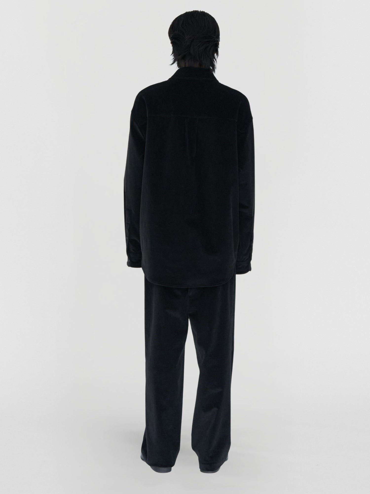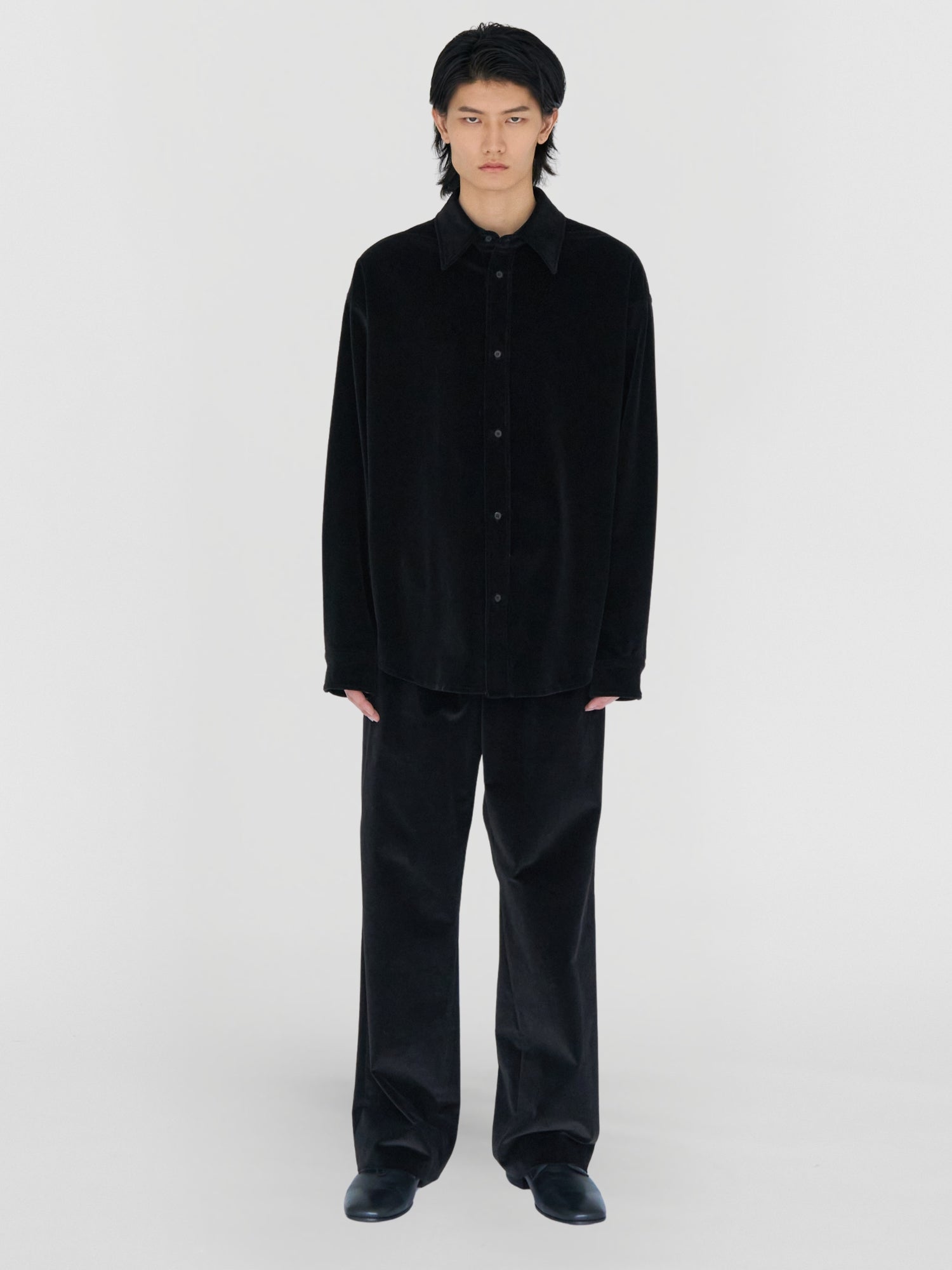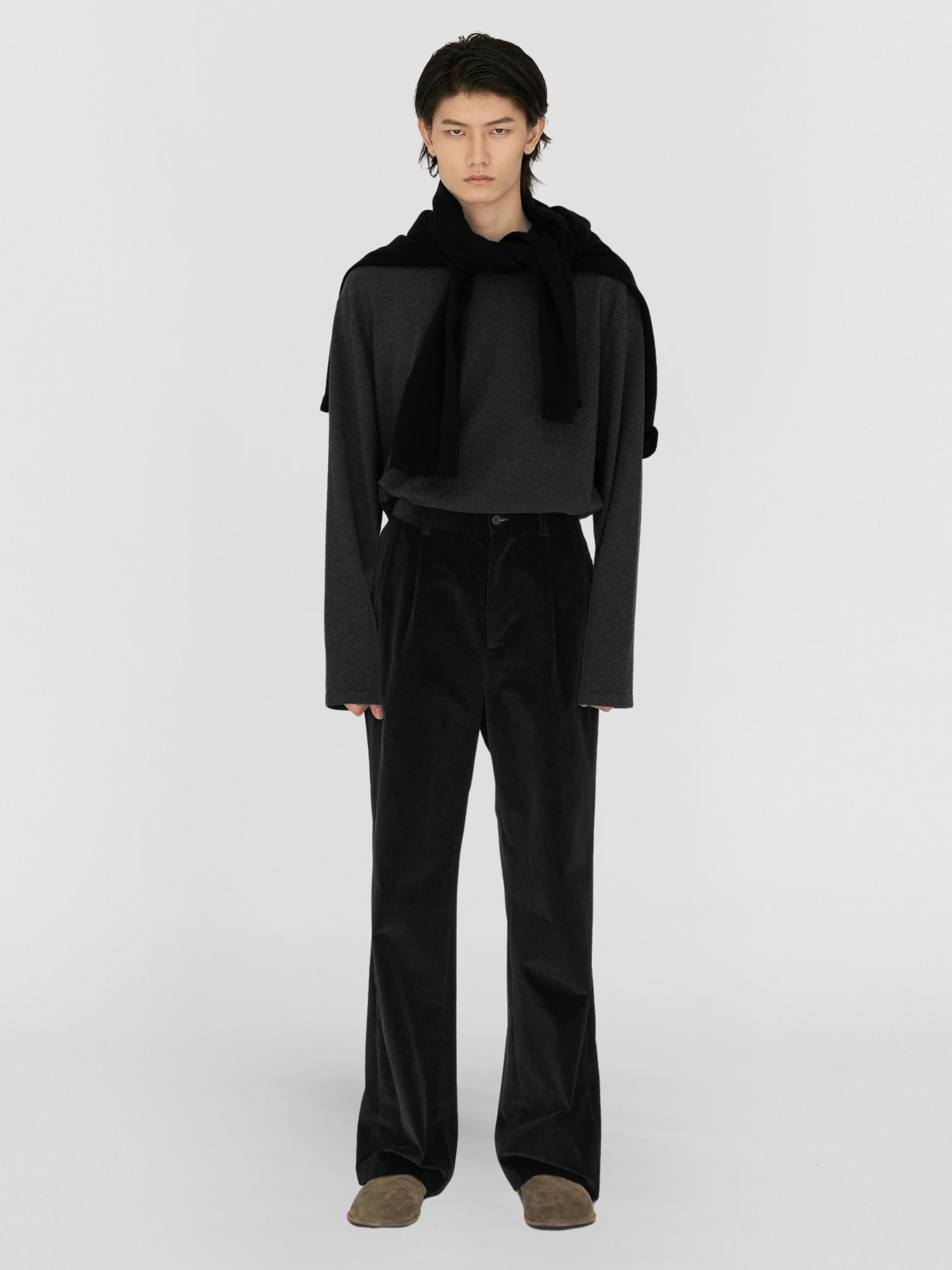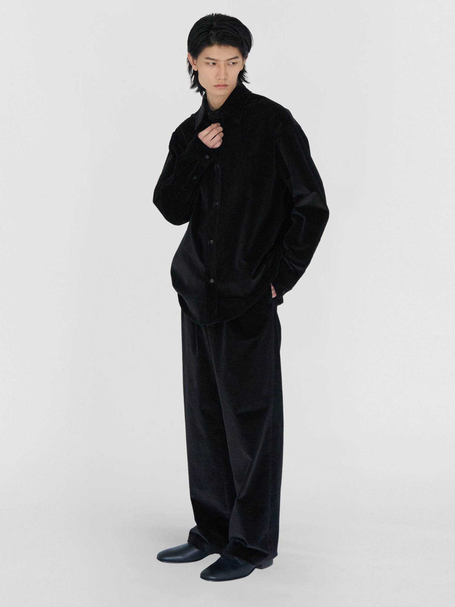 LEON Double Pleated Trouser in Piano Black Cotton Corduroy