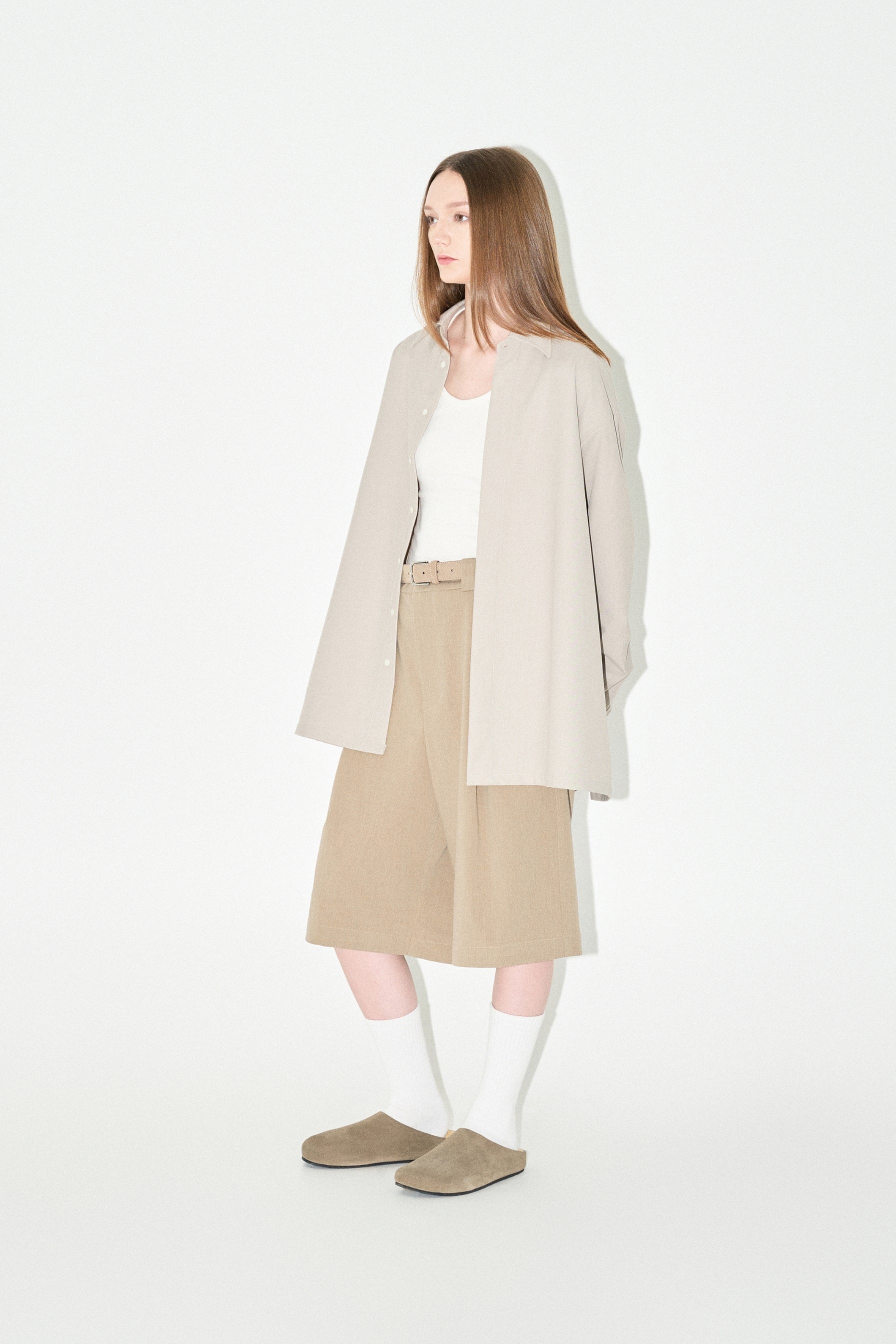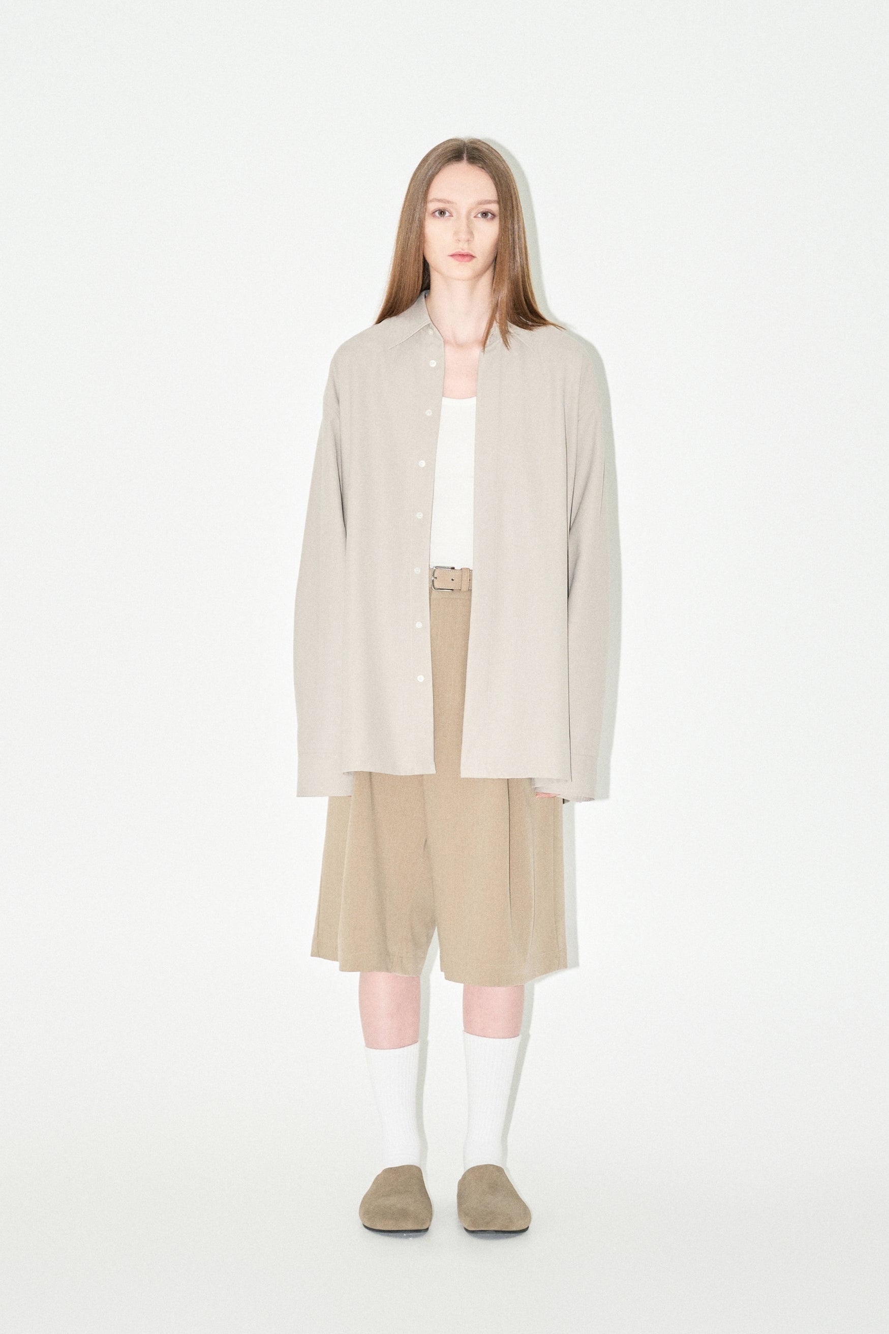 Featuring a sophisticated hidden placket design and straight cut hem paired with an oversized silhouette.