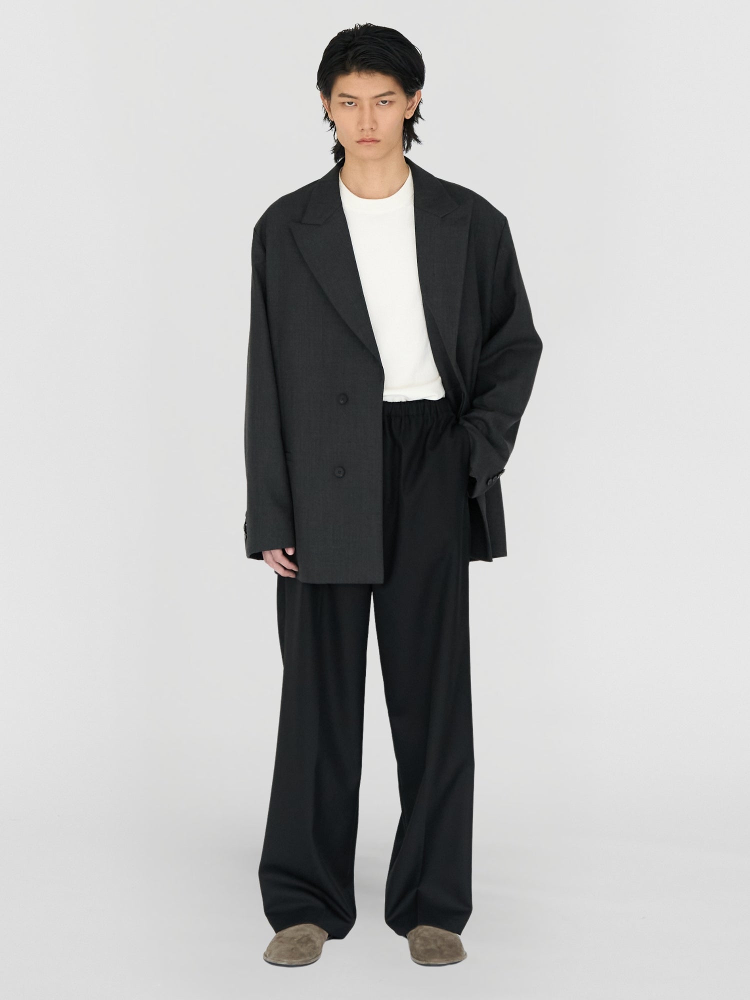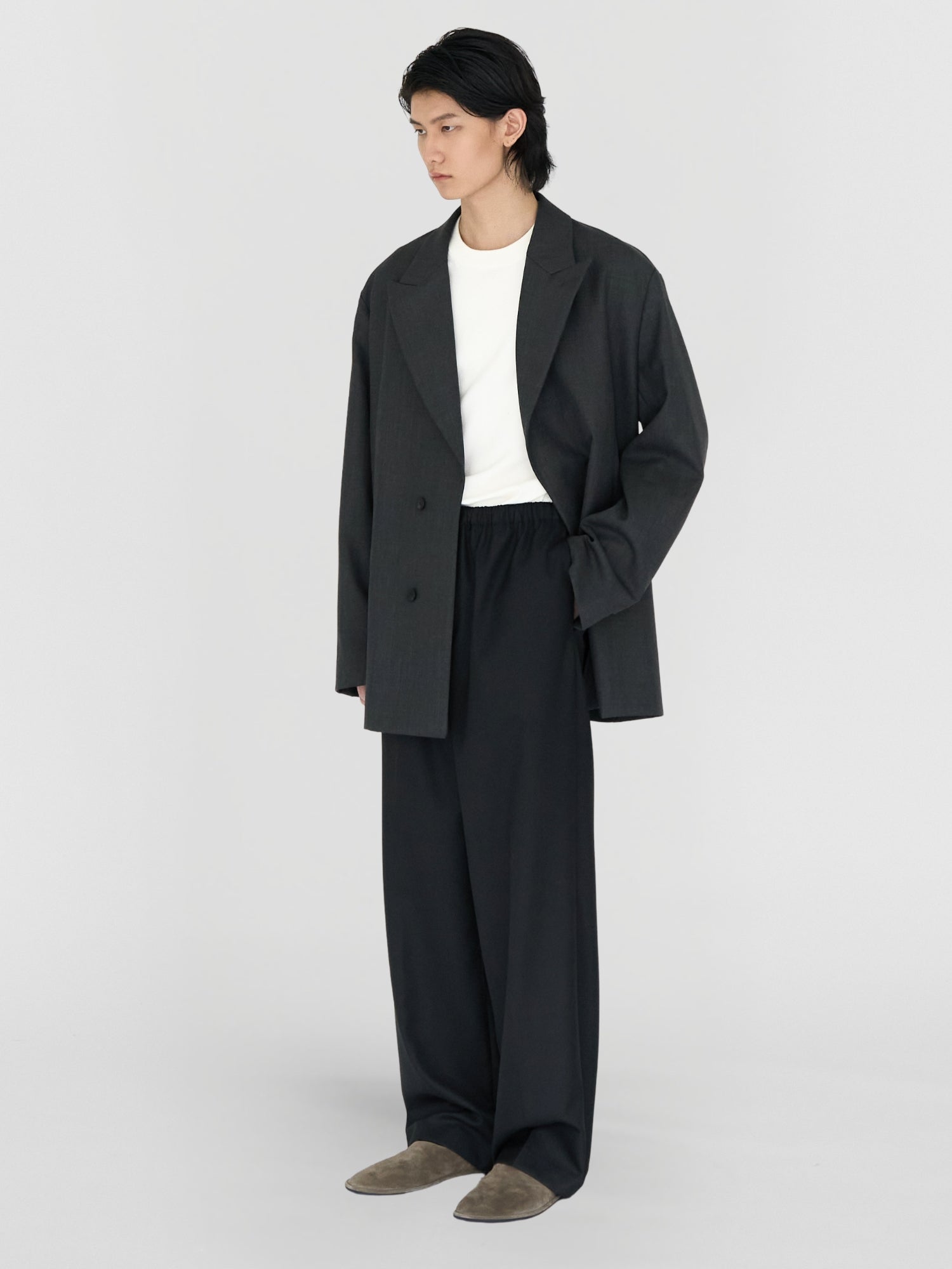 The PHIL Blazer is meticulously tailored from a premium Australian machine-washable wool blend, uniting practicality with modern refinement. Its wide peak lapel and concealed placket create a clean, elongated line, while double single-welt waist pockets lend a subtle architectural edge. Cut to an oversized silhouette, the piece is finished with natural black horn buttons along the front and sleeves, offering a discreet yet distinguished touch.
