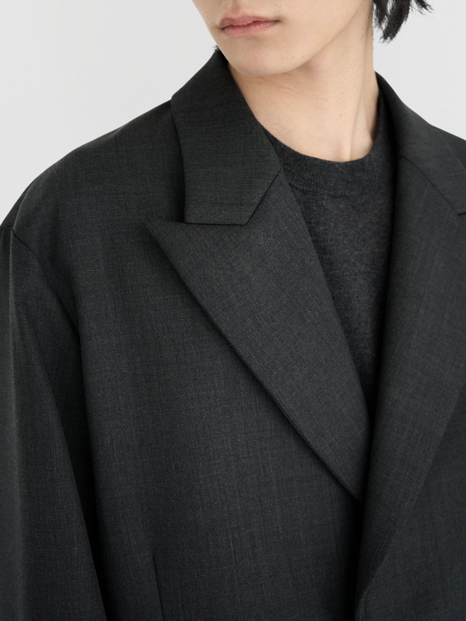 PHIL Tailored Oversized Blazer in Charcoal Marl Grey Wool