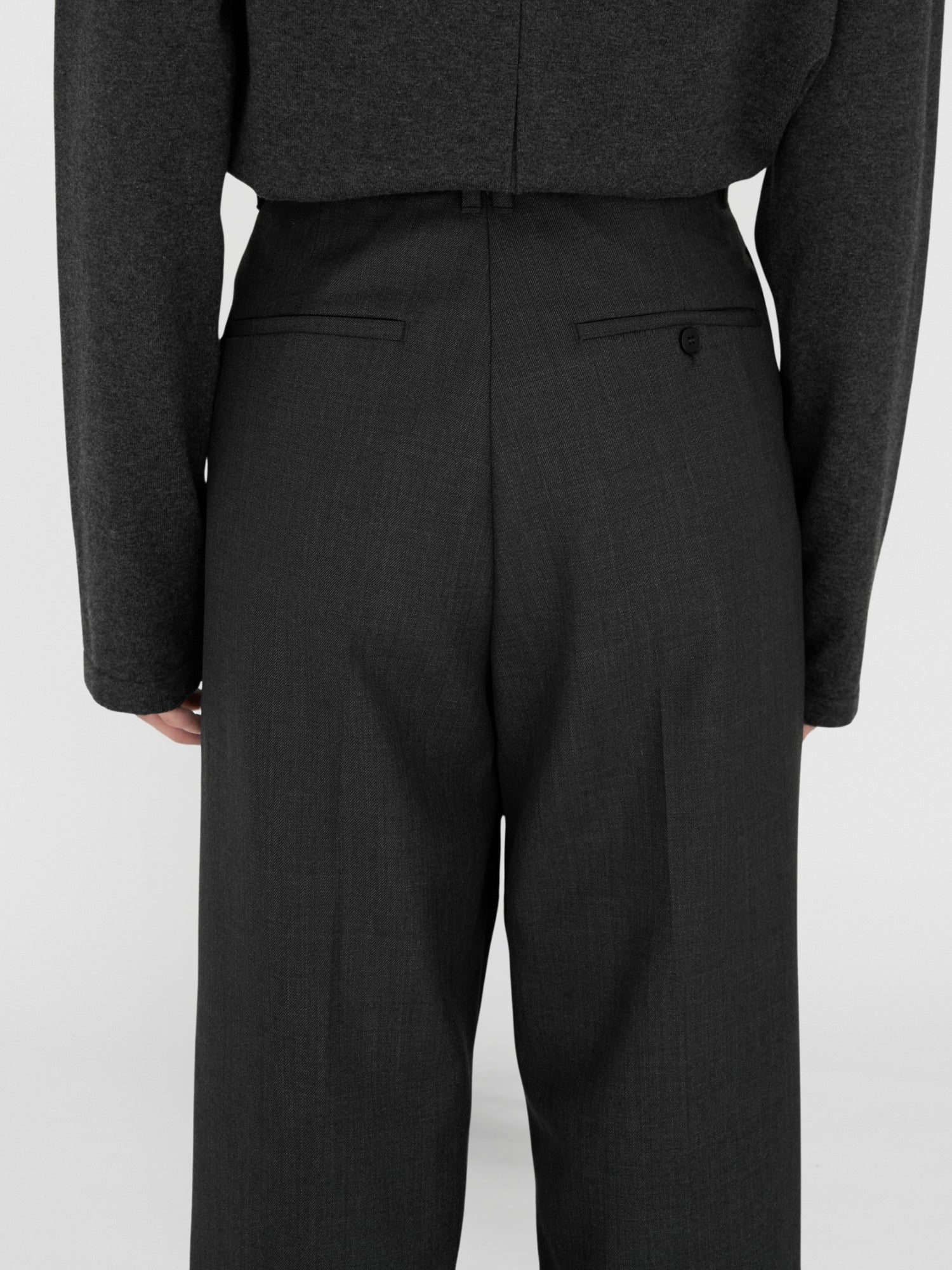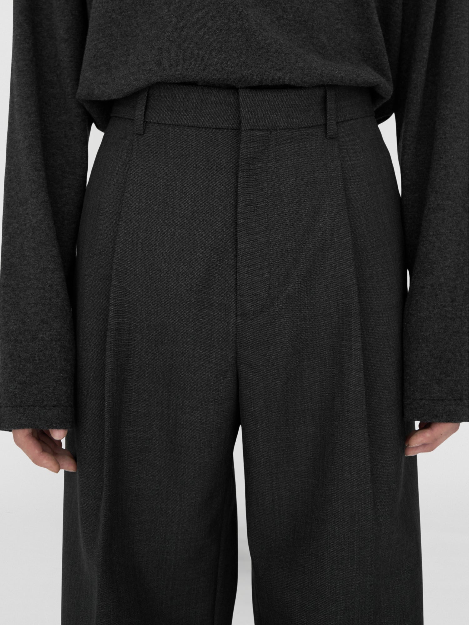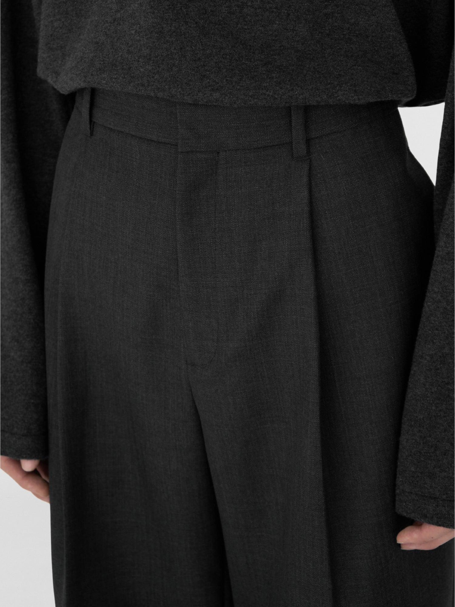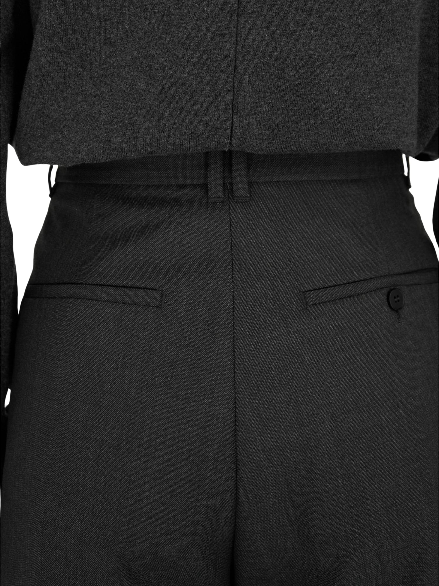 THEO Pleated Trousers in Charcoal Marl Grey Wool (Machine Washable)