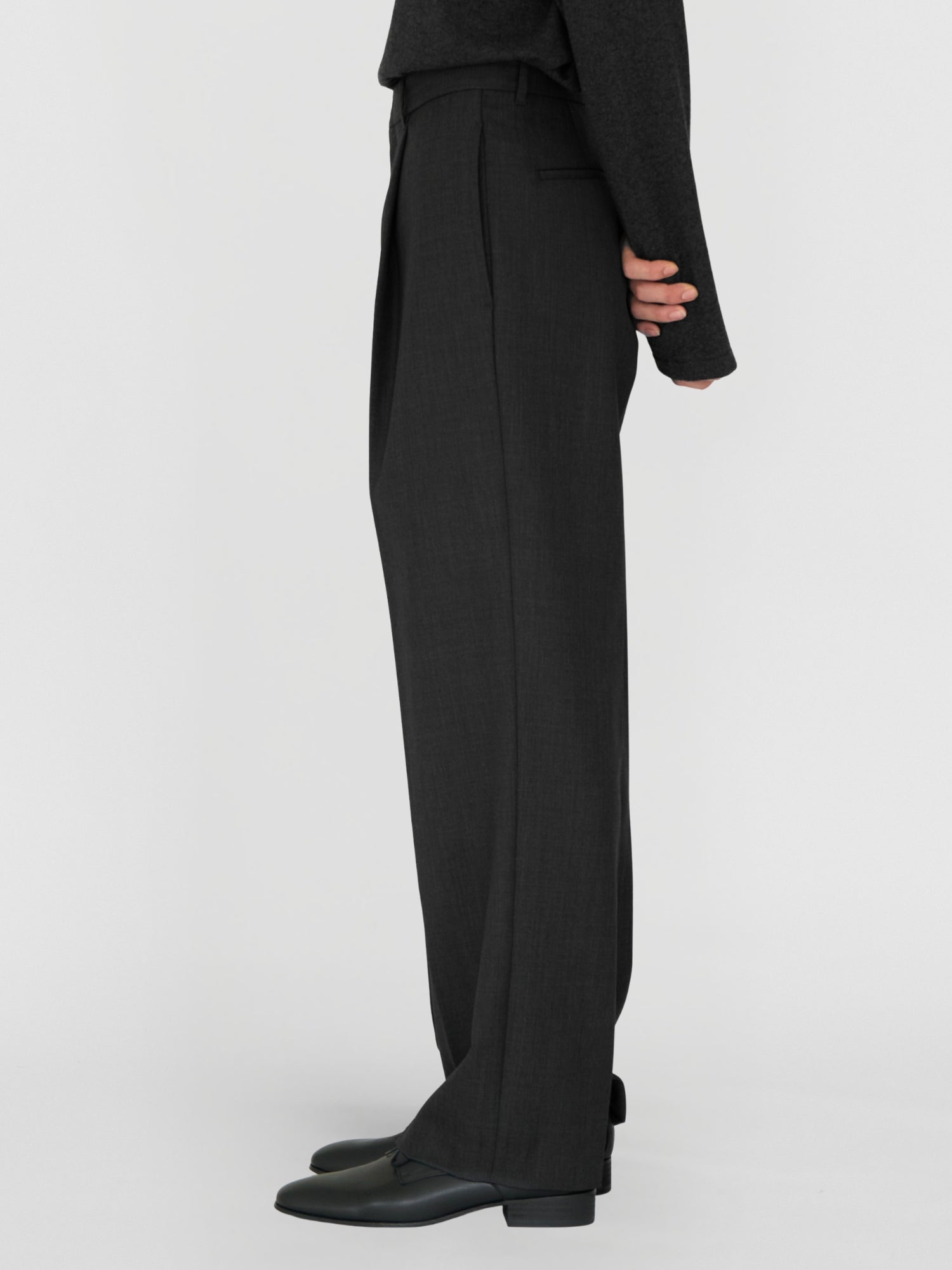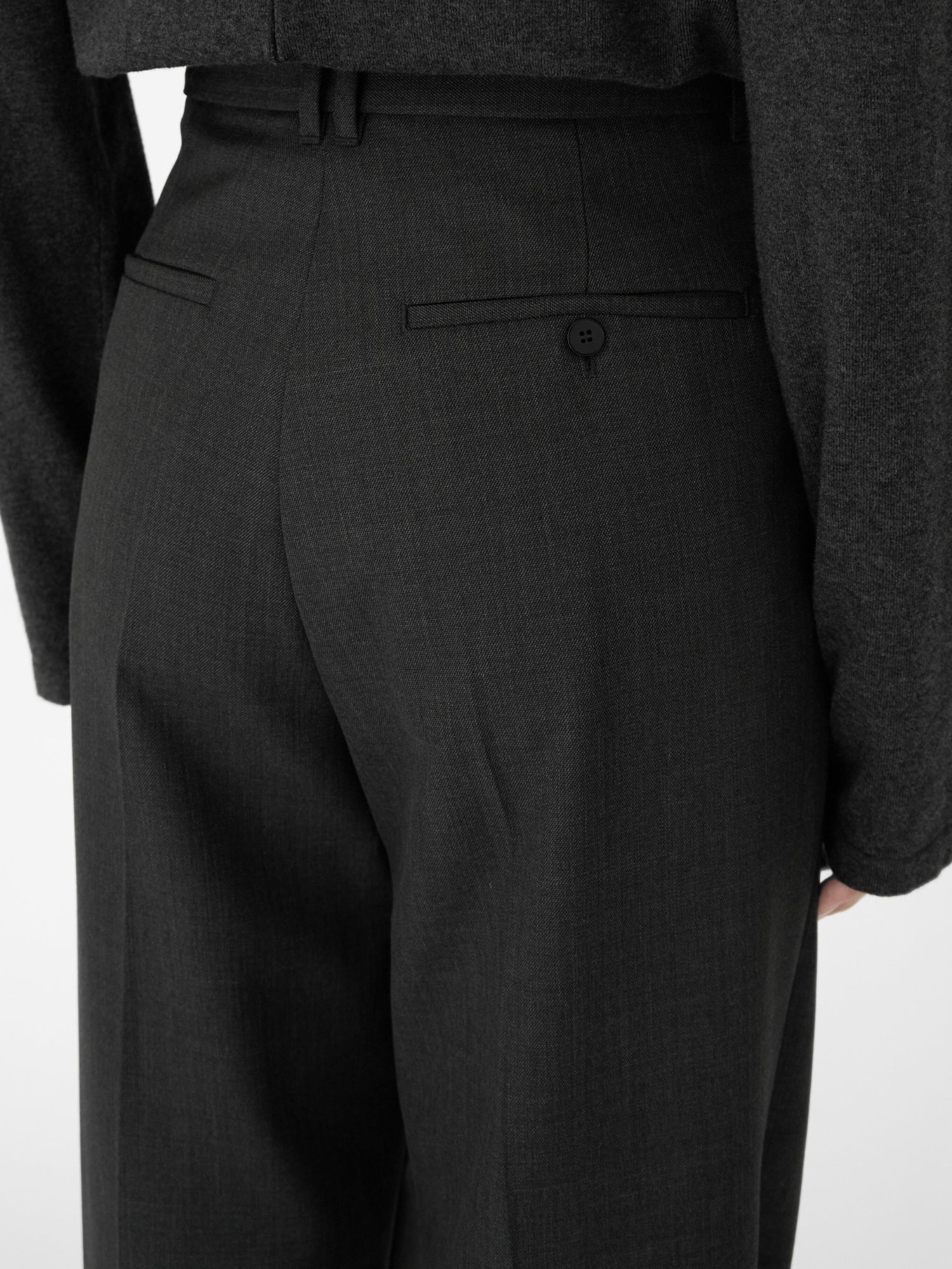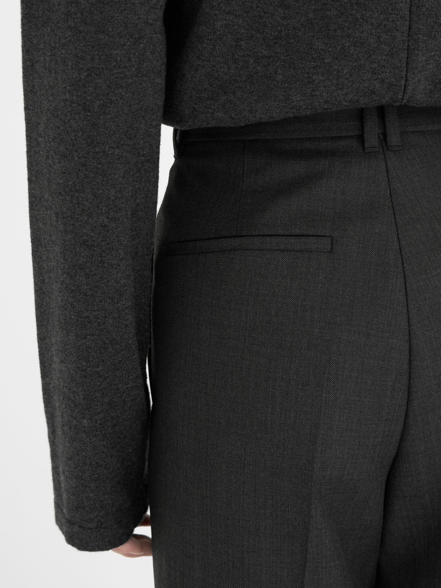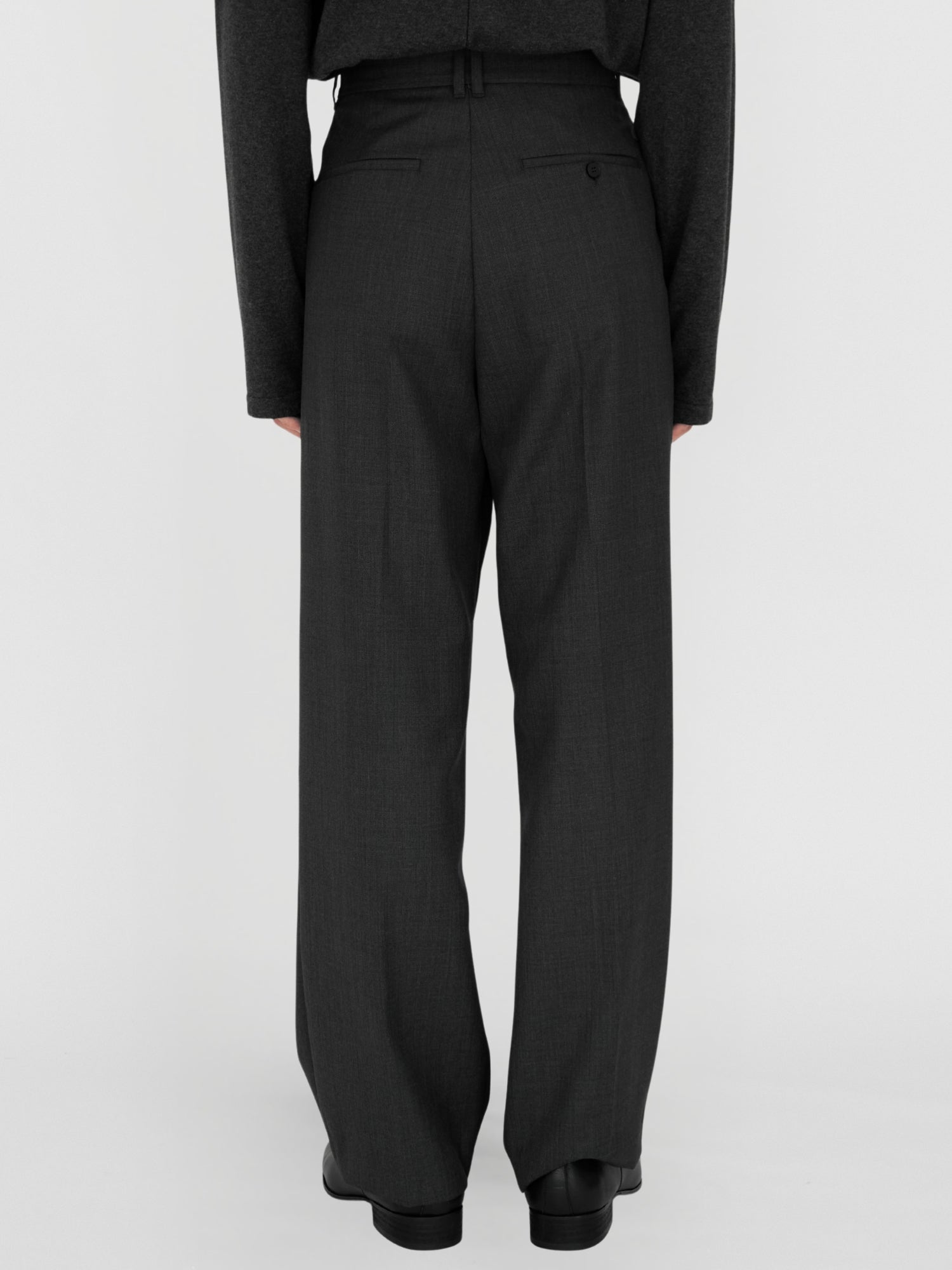 THEO Pleated Trousers in Charcoal Marl Grey Wool (Machine Washable)
