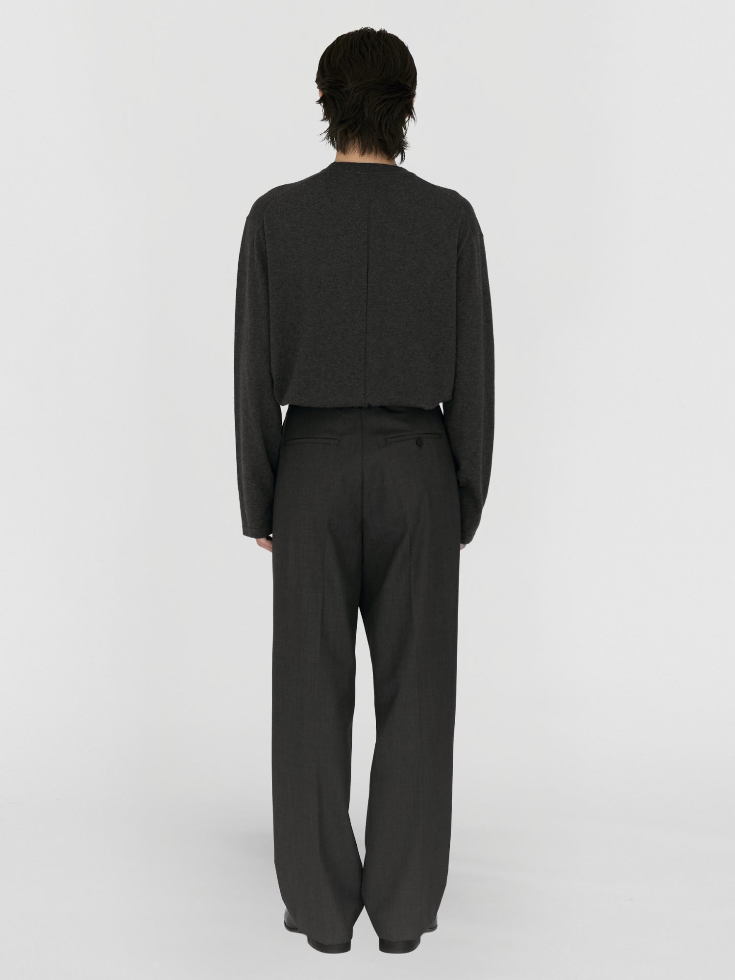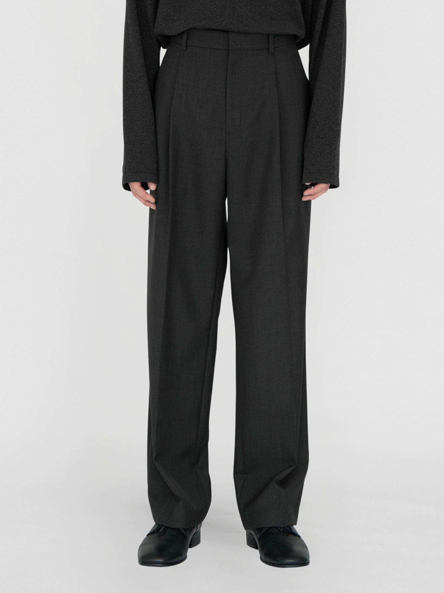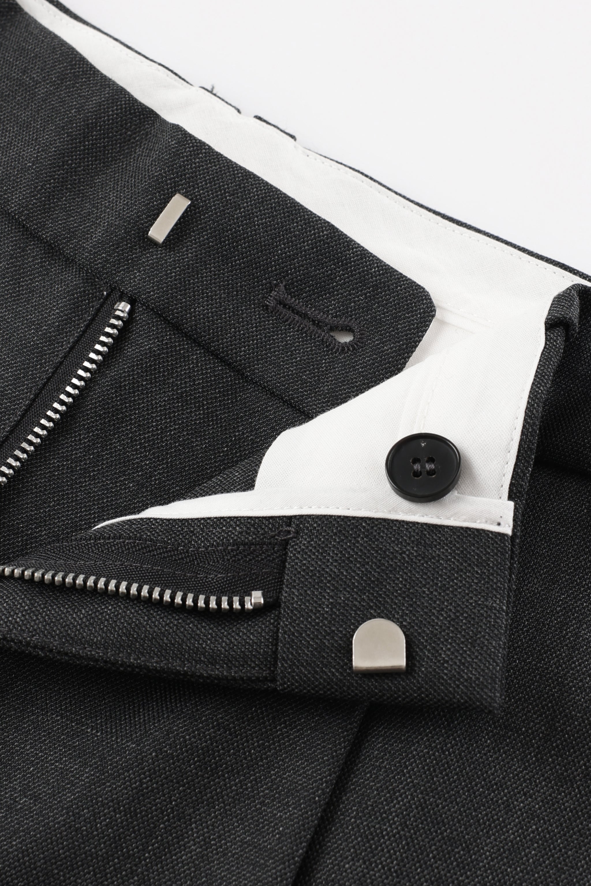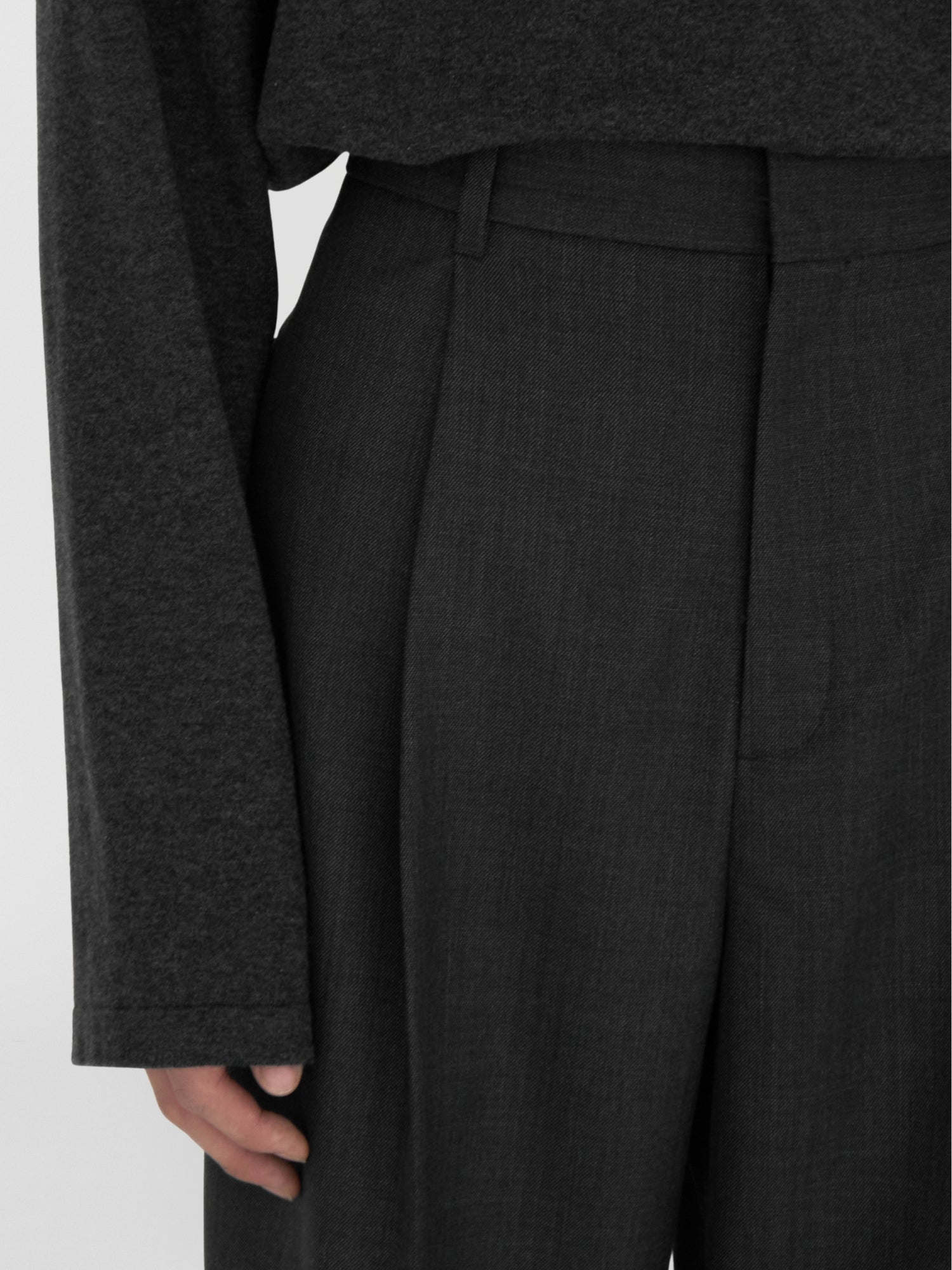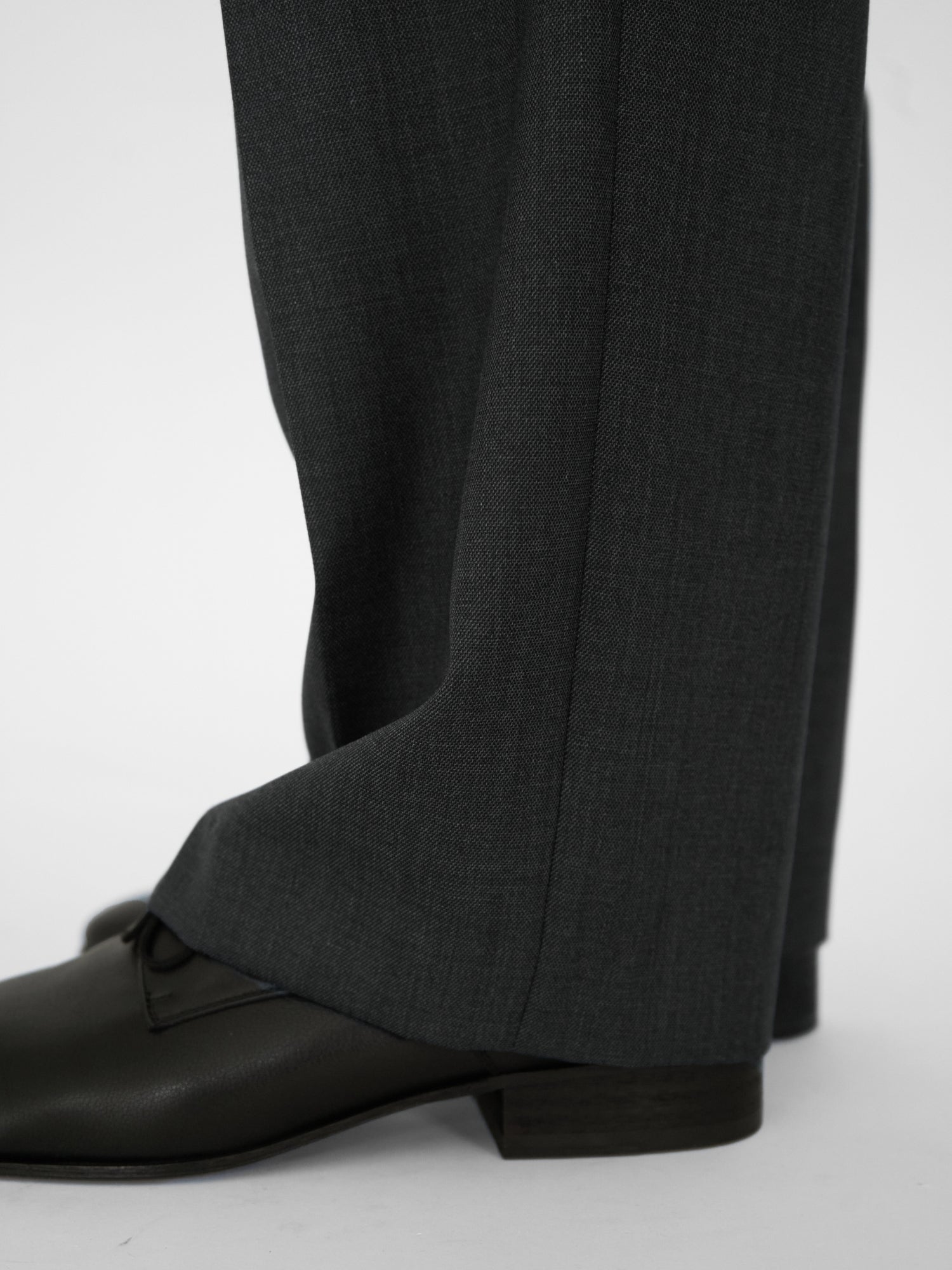 THEO Pleated Trousers in Charcoal Marl Grey Wool (Machine Washable)