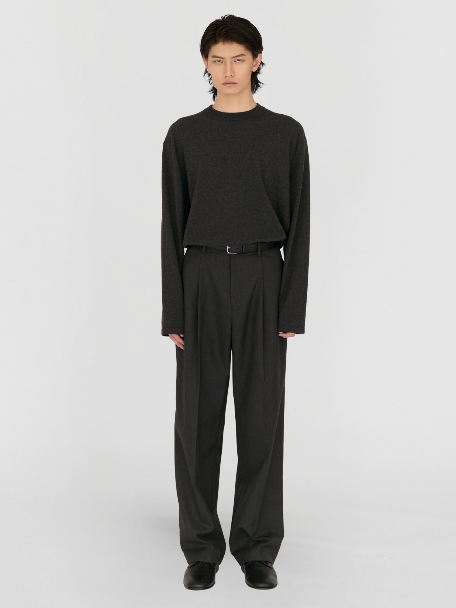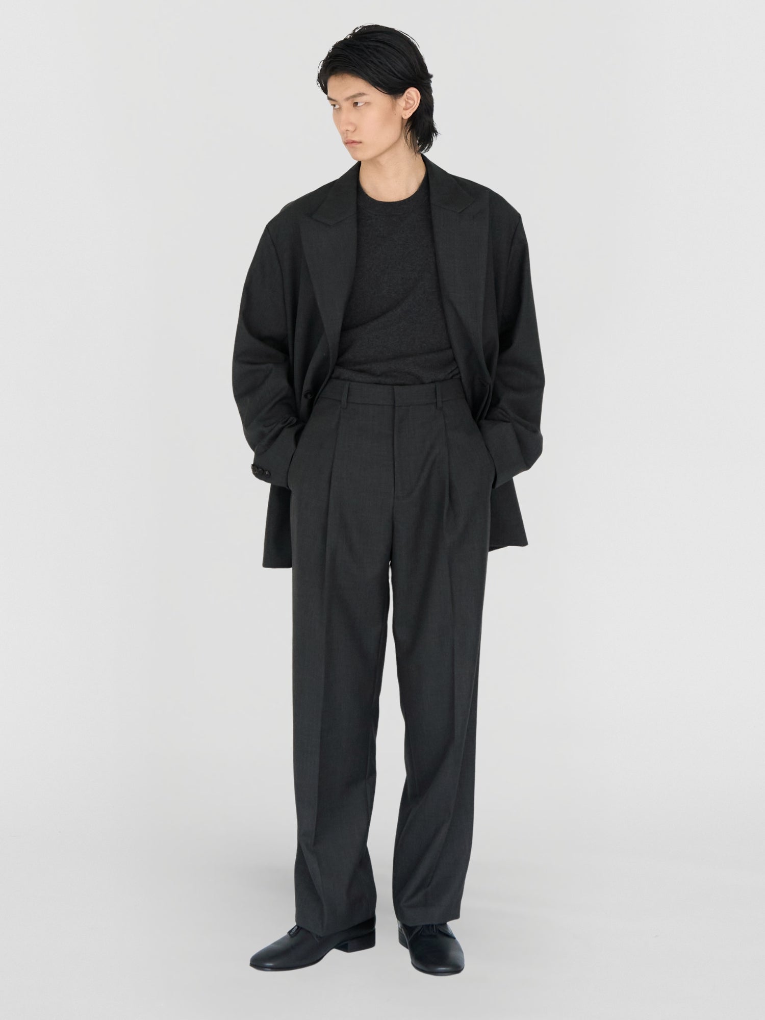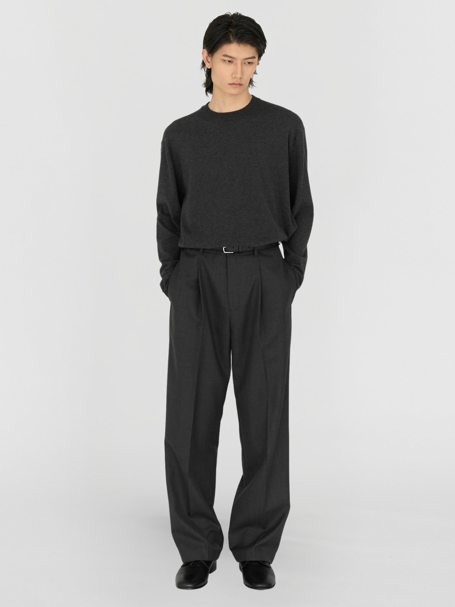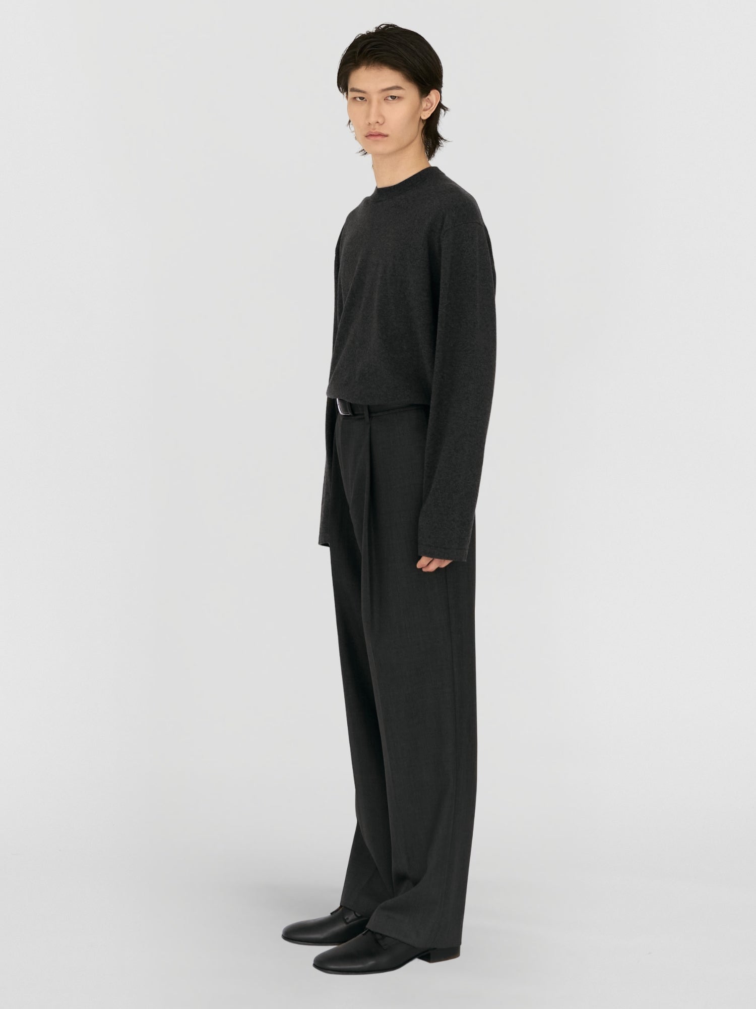 THEO Pleated Trousers in Charcoal Marl Grey Wool (Machine Washable)